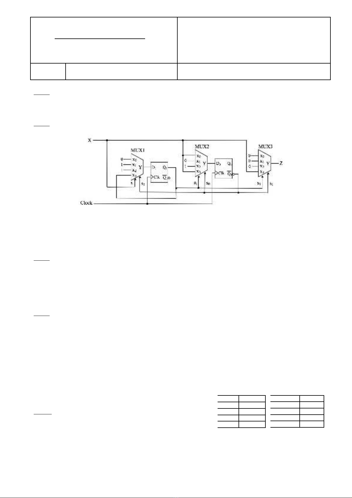trên đầu vào là dãy bít có dạng x=”1010”, Z=0 trong các trường hợp khác.