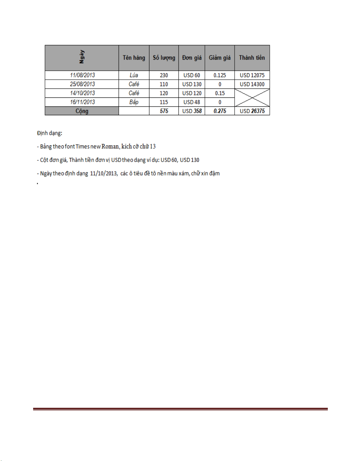30 ngày, sử dụng hàm INT để lấy số nguyên ) của tháng (1đ)