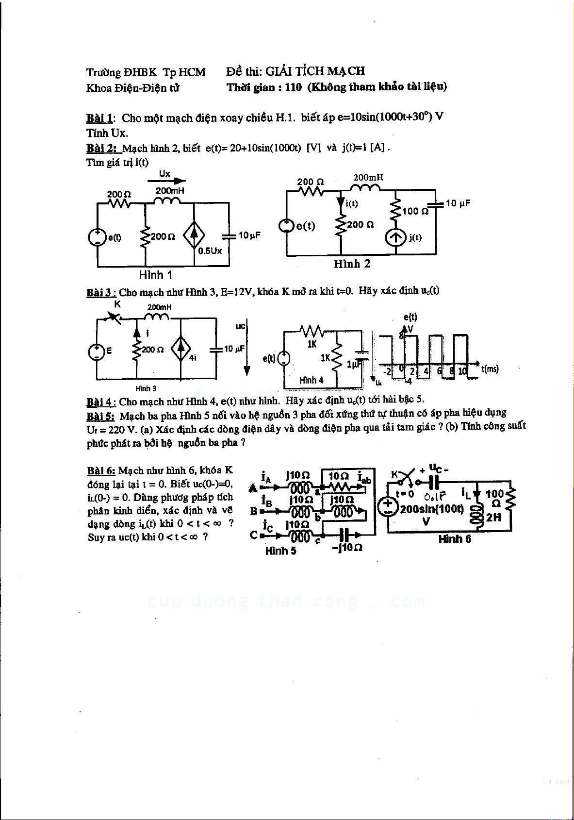 Đề thi môn Giải tích mạch giúp các bạn sinh viên có thêm tài liệu để củng cố các kiến thức, ôn tập kiểm tra, thi cuối kỳ. Đây là tài liệu bổ ích để các em ôn luyện và kiểm tra kiến thức tốt, chuẩn bị cho kì thi học kì. Mời các em và các quý thầy cô giáo bộ môn tham khảo.
