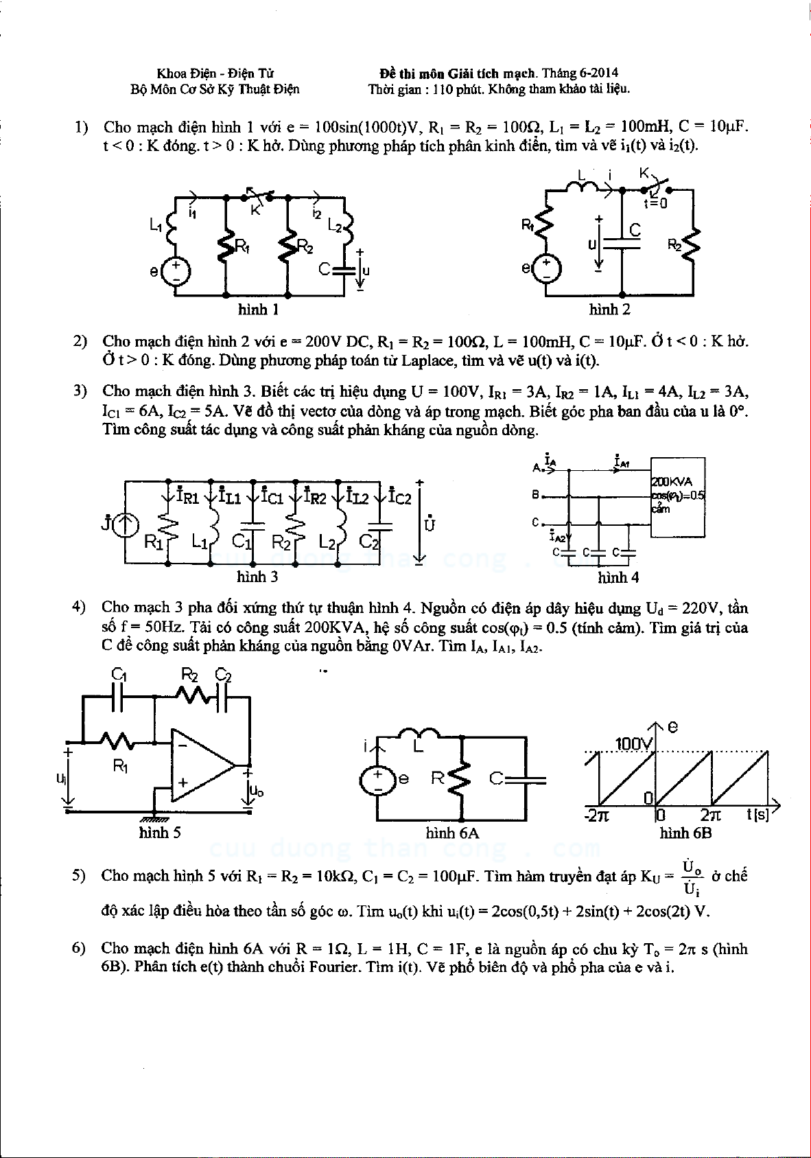 Đề thi môn Giải tích mạch - Năm học 2014-2015