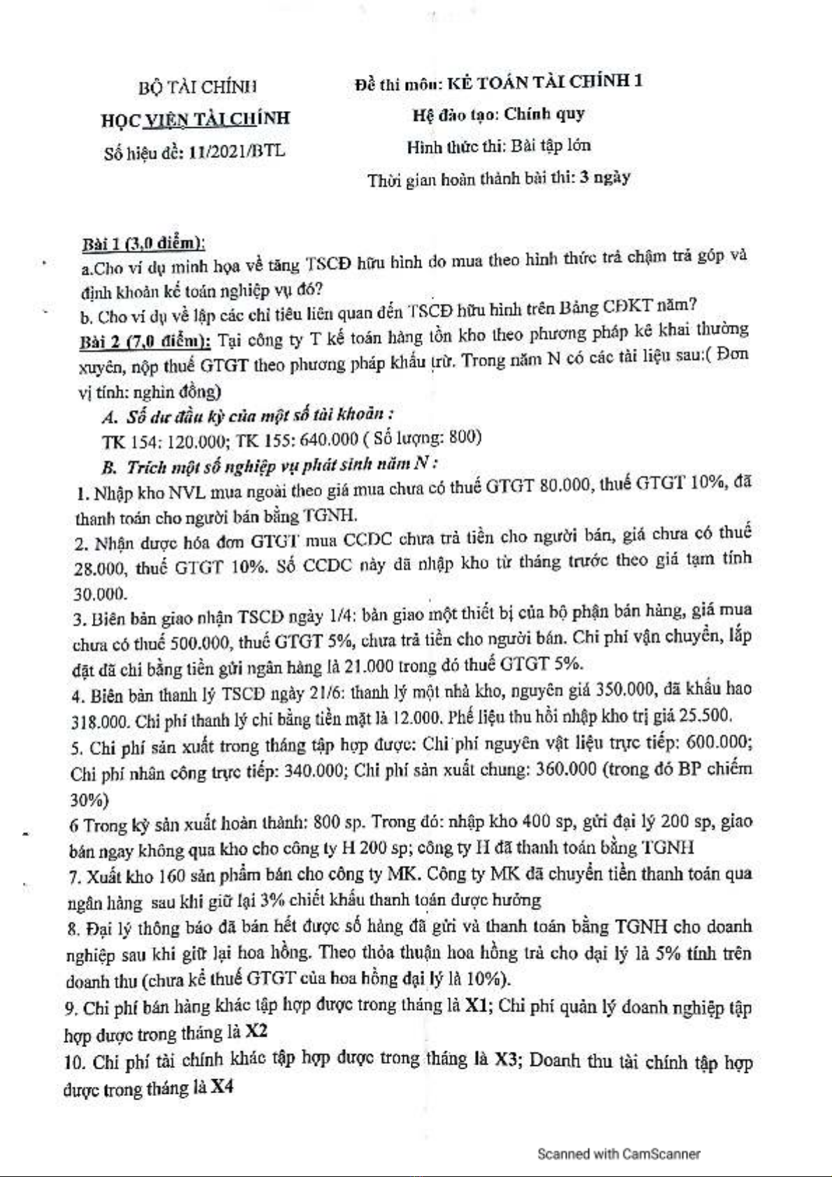 - NV4: Thanh lý 1 nhà kho, thời gian sử dụng hữu ích 5 năm, phiếu liệu thu