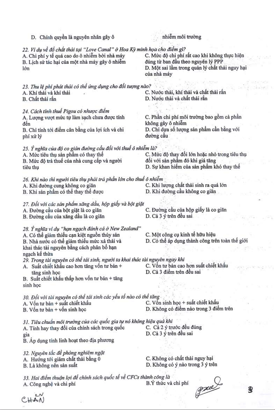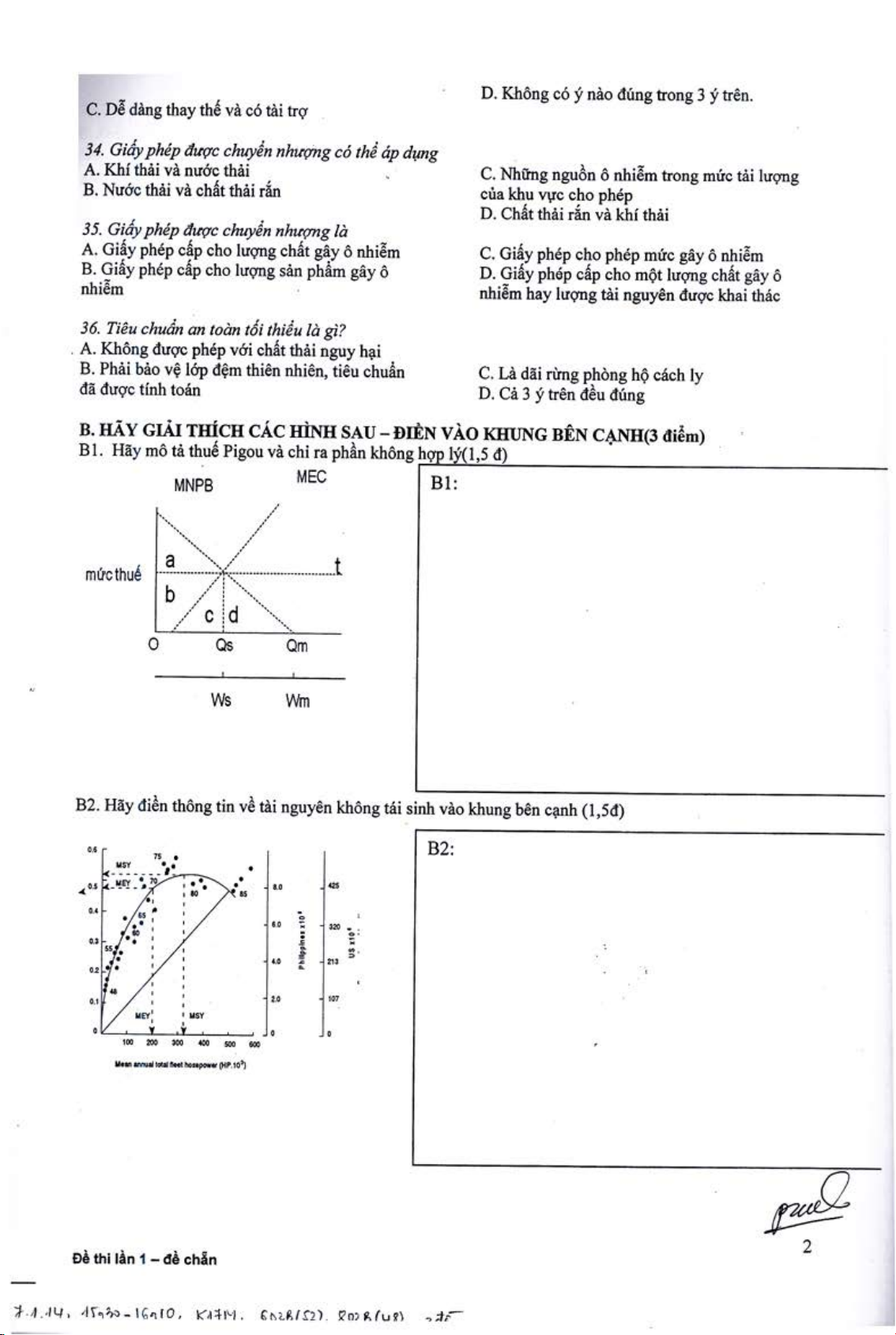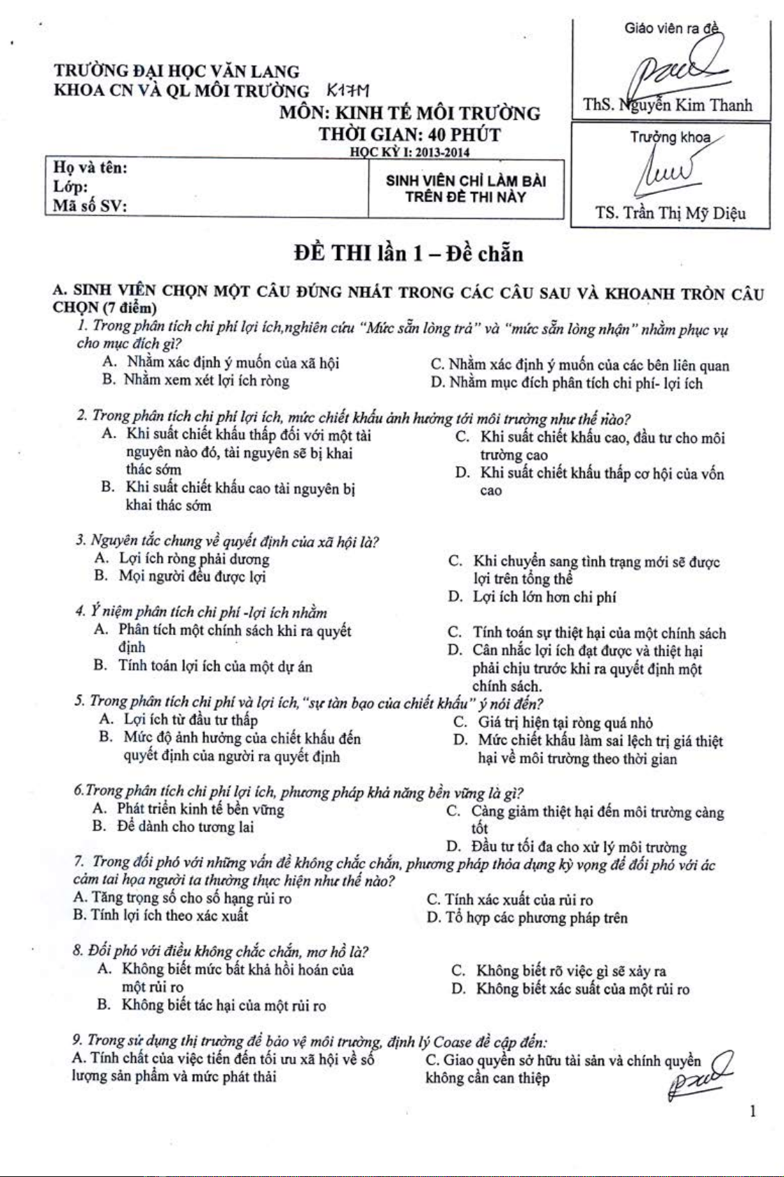 Đề thi môn Kinh tế môi trường năm 2013-2014 - ĐH Văn Lang