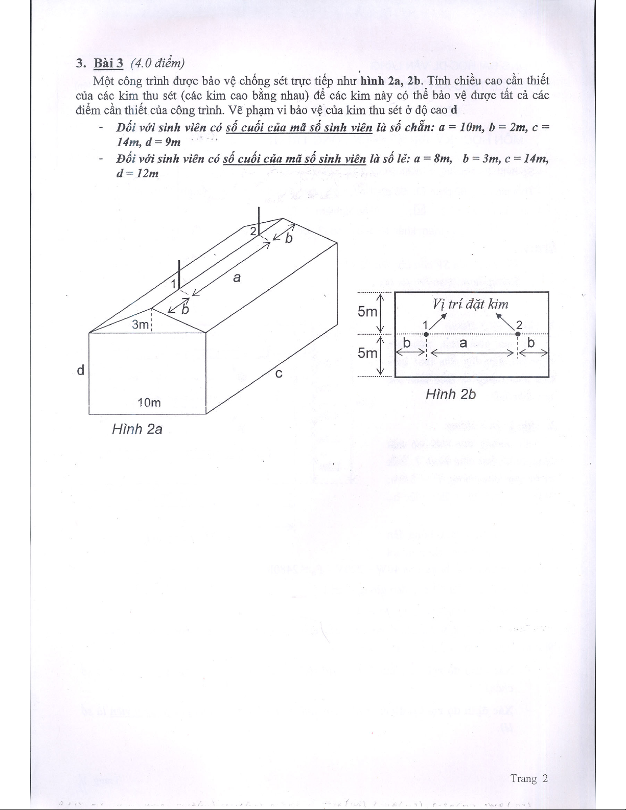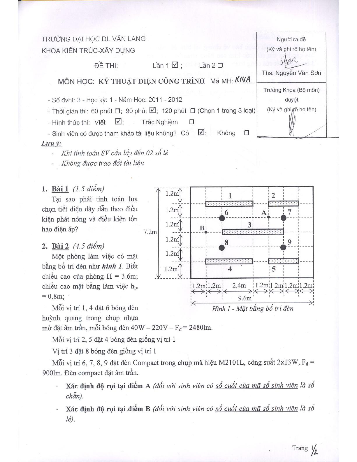 Đề thi môn kỹ thuật điện công trình - ĐH Dân Lập Văn Lang
