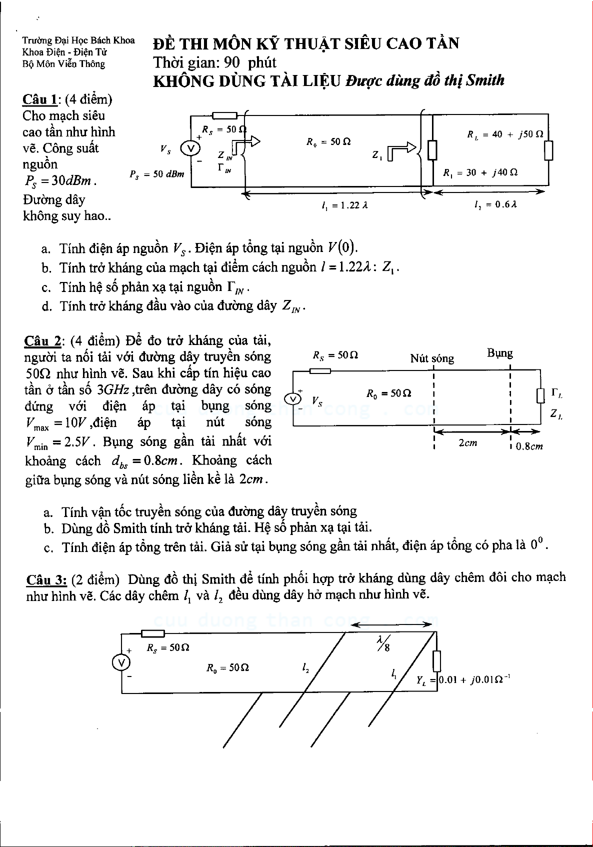 Đề thi môn Kỹ thuật siêu cao tần gồm 3 bài tập kèm đáp án nhằm giúp người học ôn tập và củng cố kiến thức, giúp cho các bạn sinh viên nắm bắt được cấu trúc đề thi, dạng đề thi chính để có kế hoạch ôn thi một cách tốt hơn. Mời các bạn cùng tham khảo nội dung chi tiết.