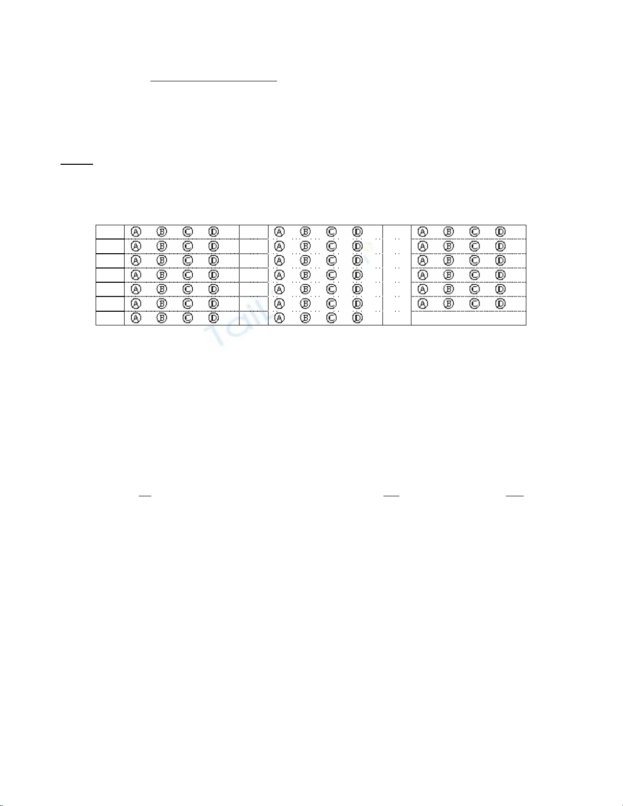 Lưu ý: - Thí sinh dùng bút tô kín các ô tròn trong mục số báo danh và mã đề thi trước khi làm bài. Cách tô