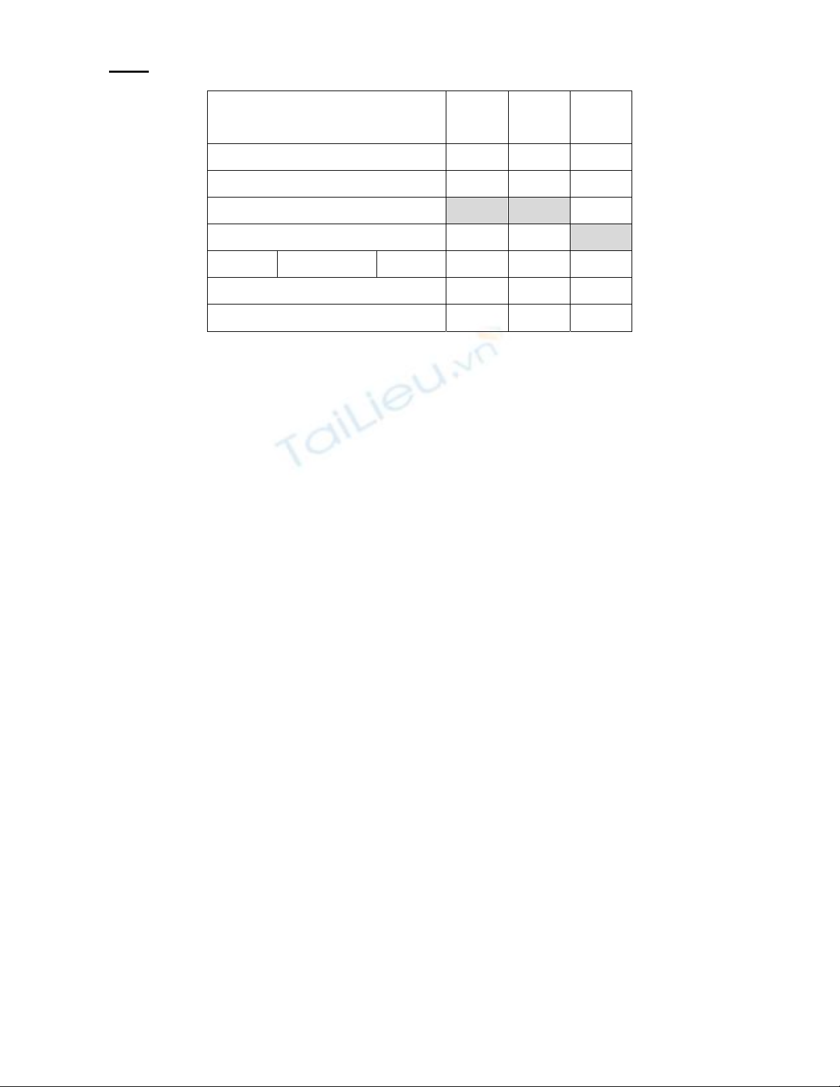 Sinh viên chọn câu trả lời đúng nhất vào bảng sau: