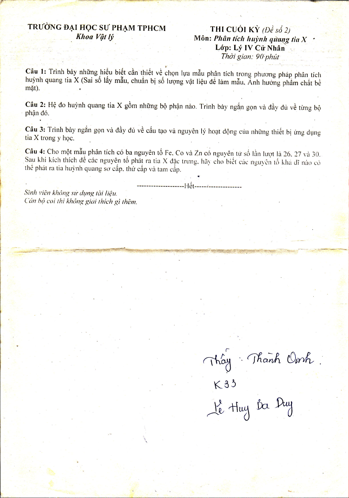 Khoa VAt Ij, M6n: phAn fich hujtnh r/lirry.lg tirt X