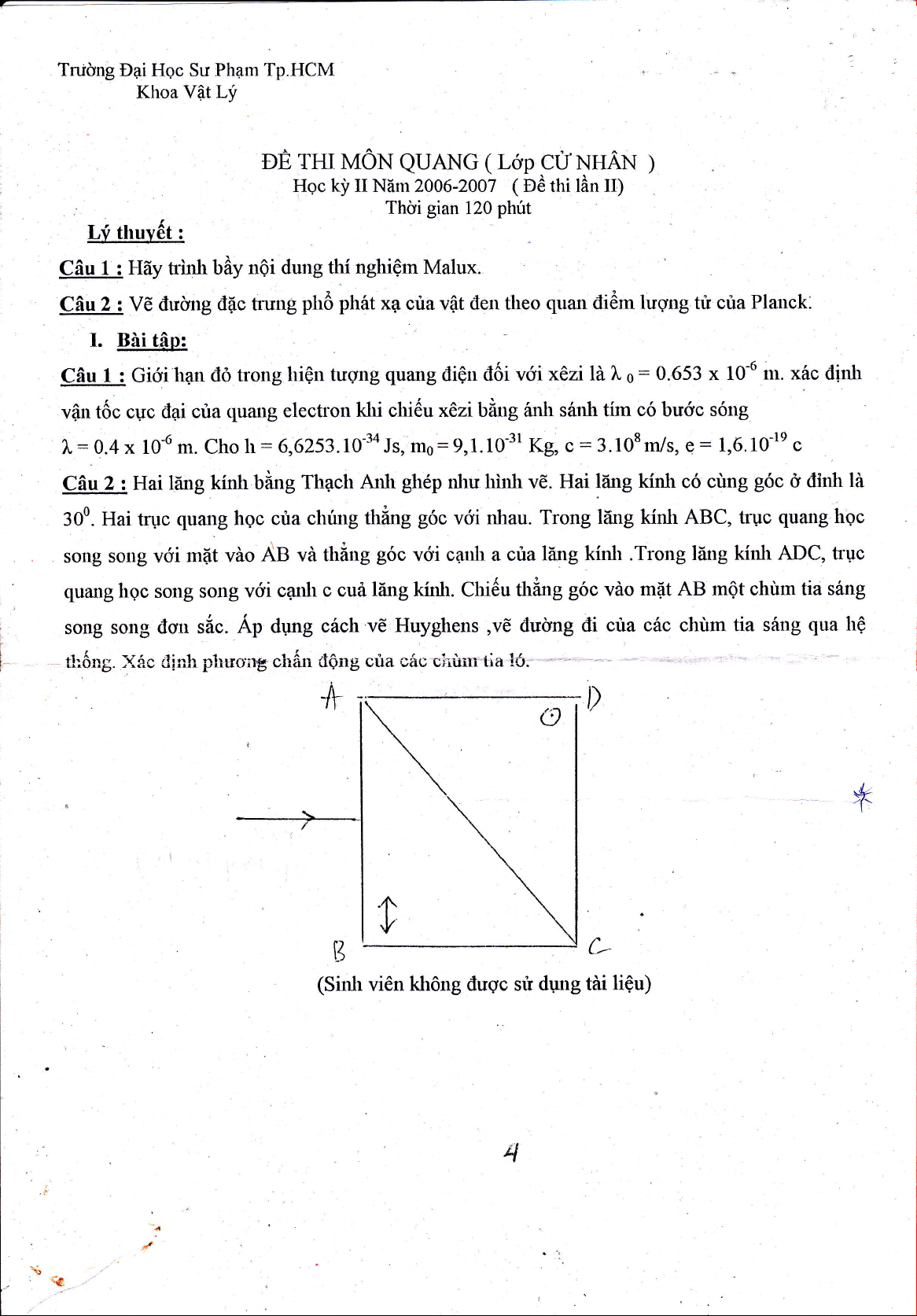Hqc kj'II N6m 2006-2007 ( Ee thi ldn II)