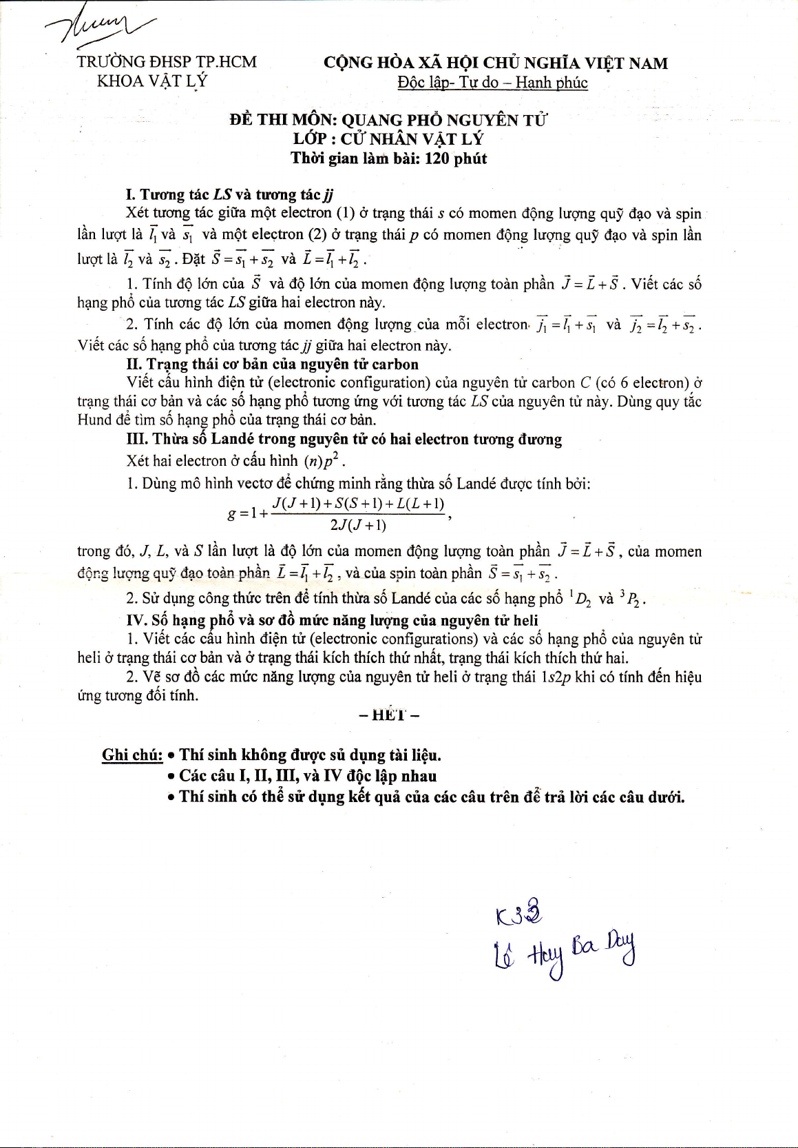 tr4ng thrli co bin vd c6c pO hAng ph6 tuong ung vdi tuong t6c LS cria nguy€n tir ndy. Dirng quy tic