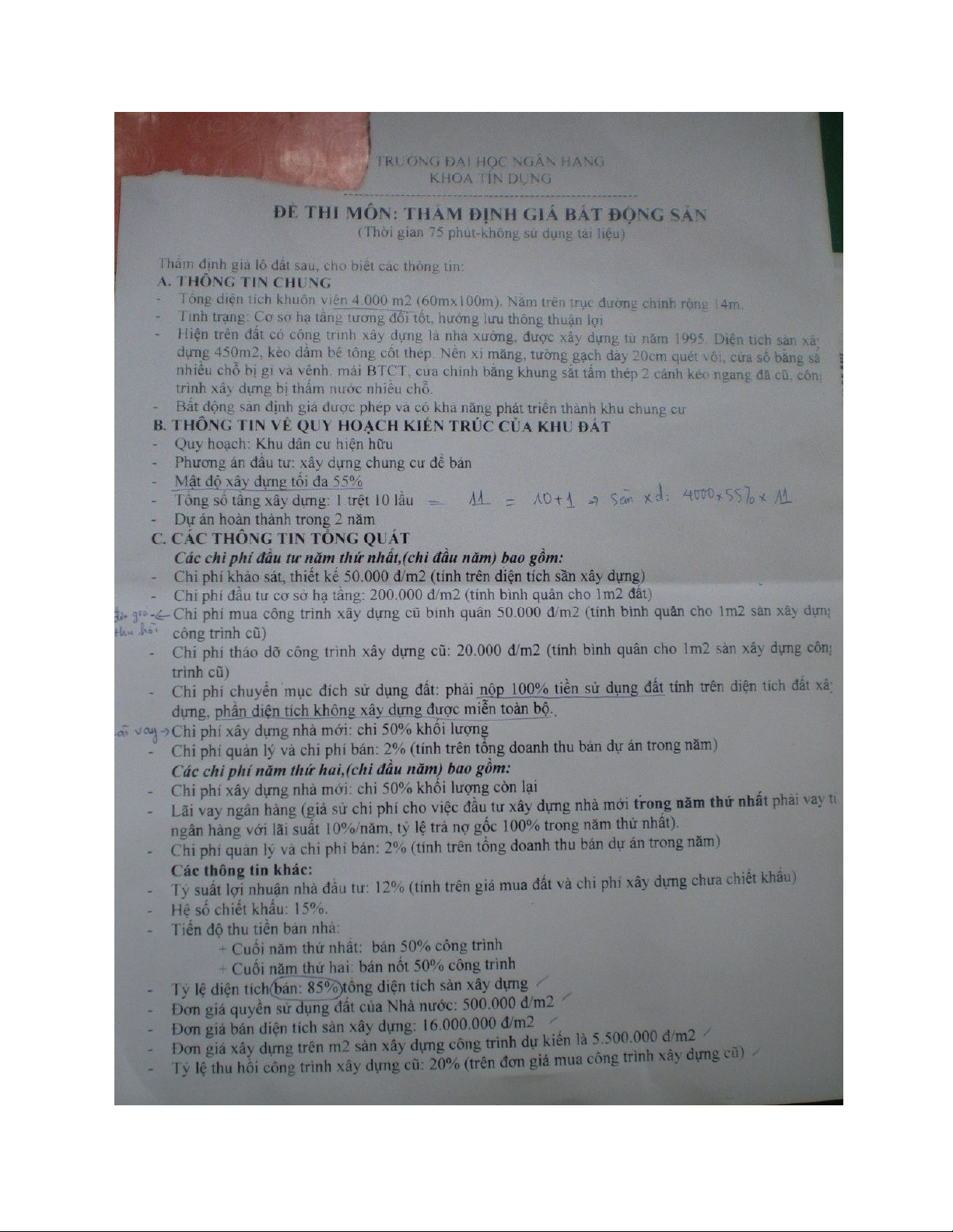 Đề thi môn thẩm định giá bất động sản, mời các bạn cùng tham khảo đề nhé