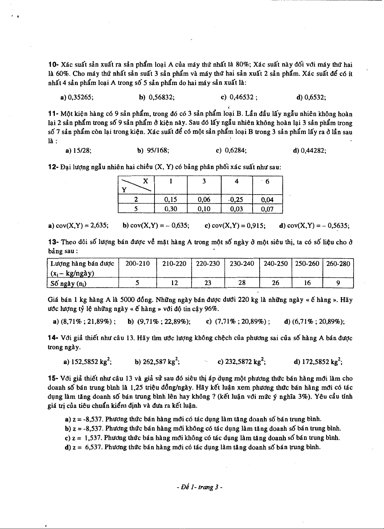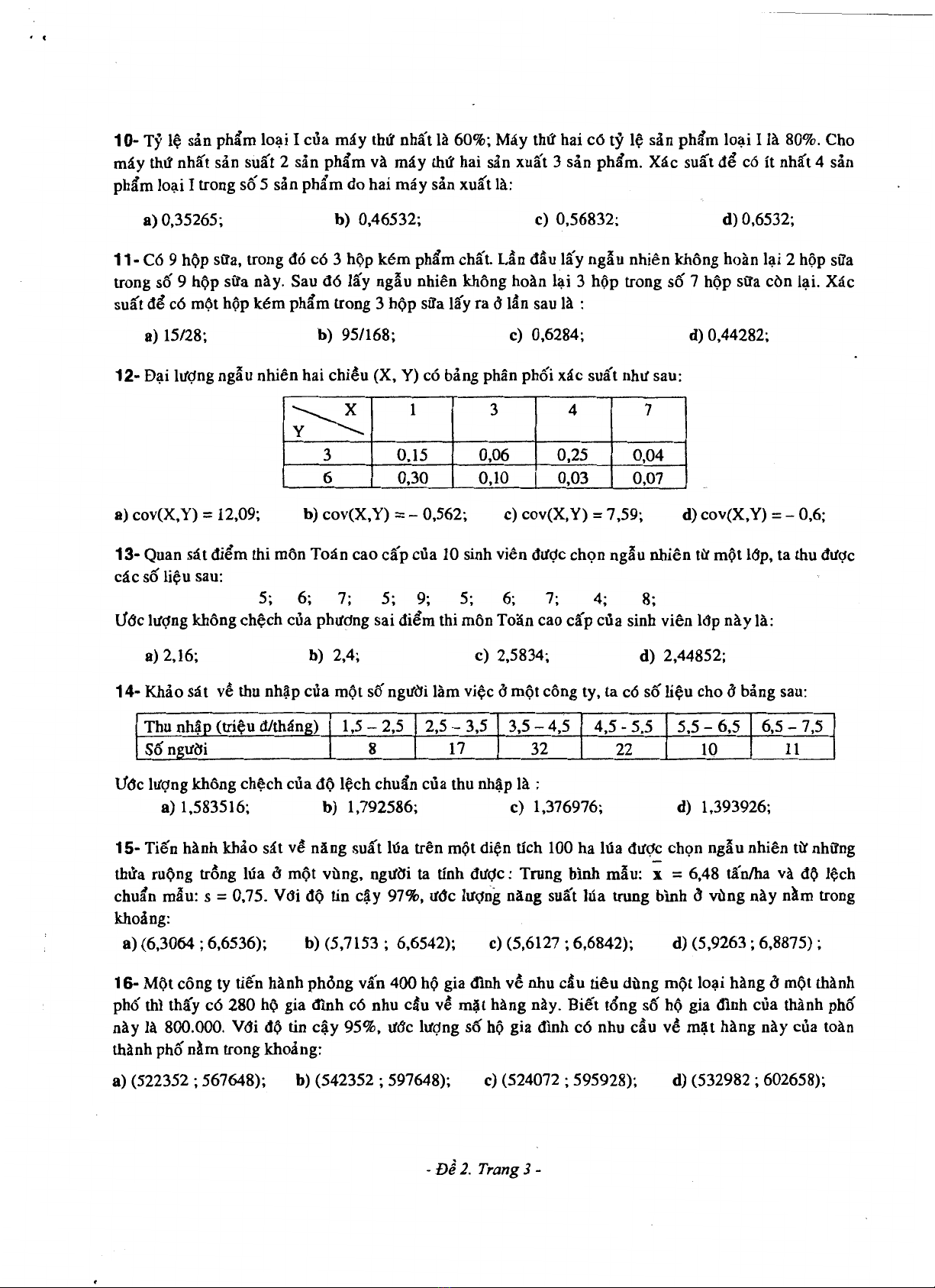 Bộ 10 đề thi kết thúc học phần môn Xác suất thống kê năm học 2016-2017 có đáp án - Học viện Nông nghiệp Việt Nam