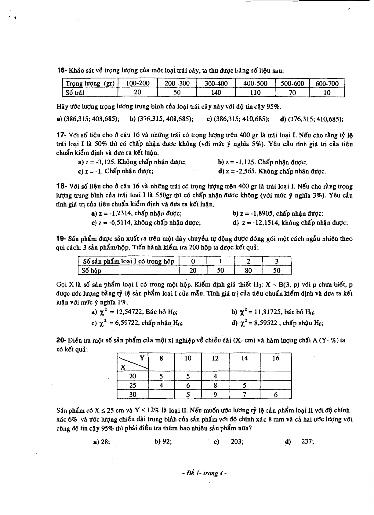Bộ 4 đề thi kết thúc học phần môn Xác suất thống kê năm học 2017 - Học viện Nông nghiệp Việt Nam