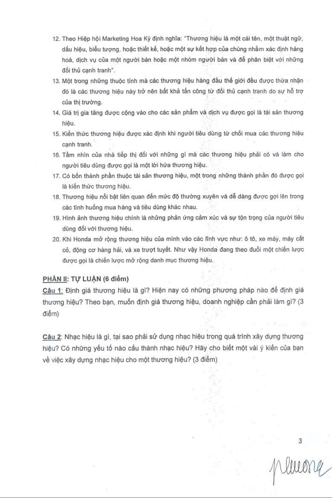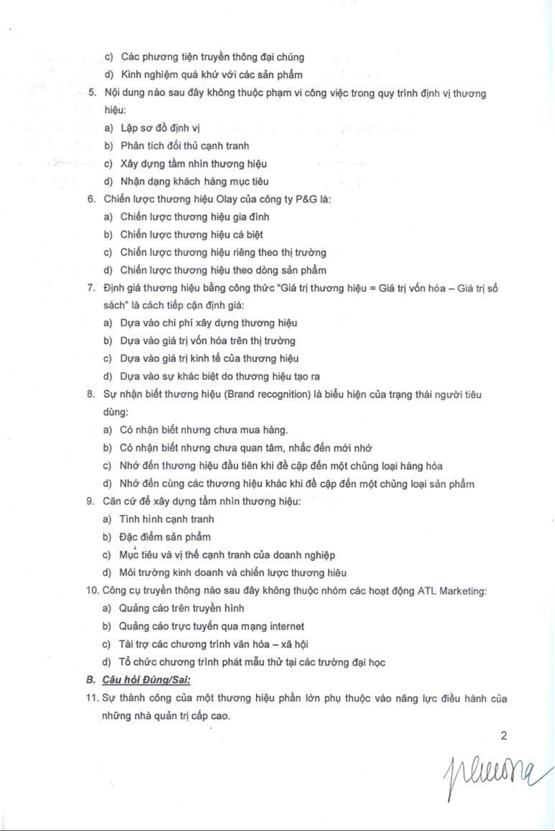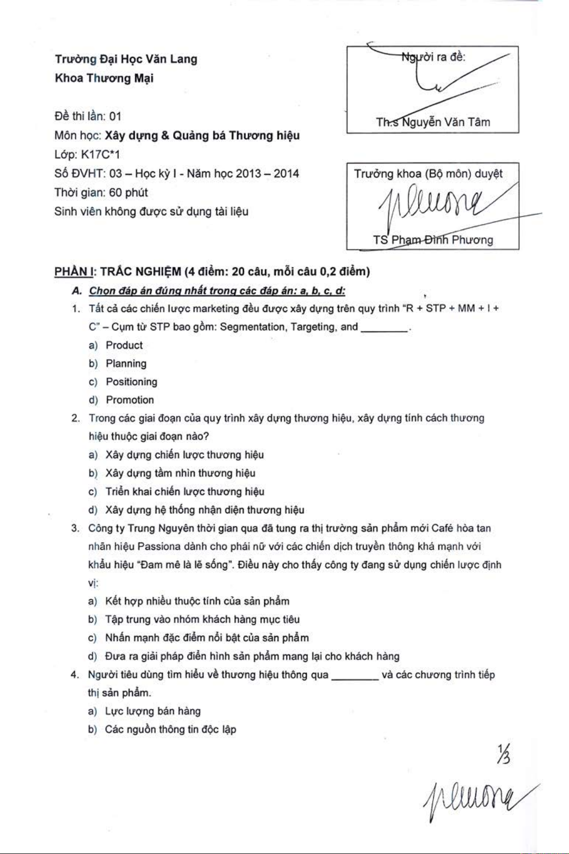 Đề thi môn Xây dựng & Quảng bá thương hiệu năm 2013-2014 - ĐH Văn Lang