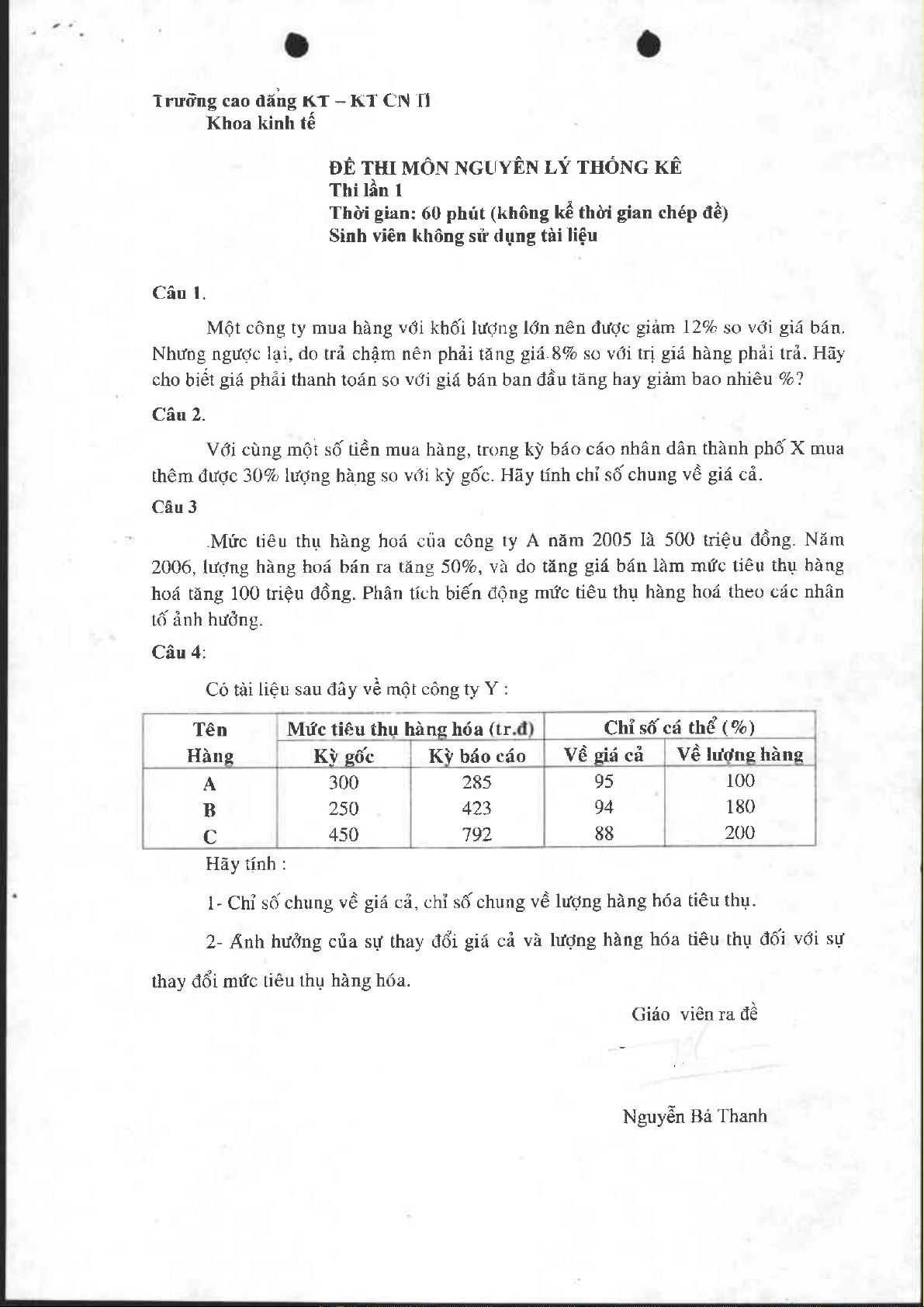 Tài liệu tham khảo về đề thi môn nguyên lý thống kế khoa kinh tế