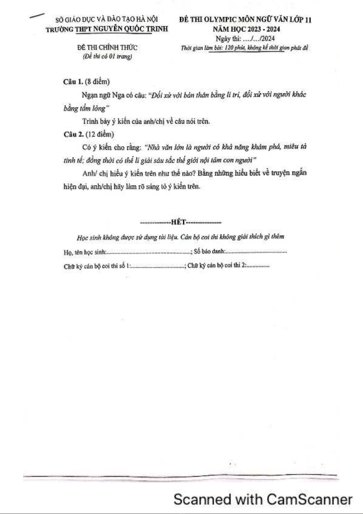 Đề thi Olympic môn Ngữ văn lớp 11 năm 2023-2024 - Trường THPT Nguyễn Quốc Trinh, Hà Nội