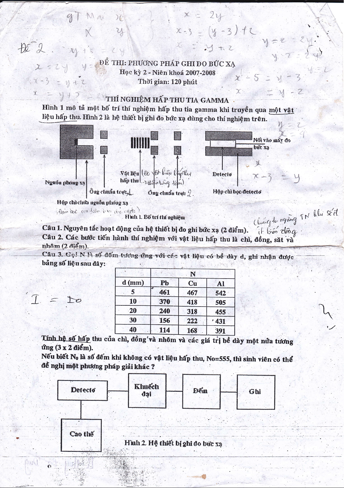 rDnh 1 m0 ti mOt b6'tri thi nghiQm ha'p thu tia gamma khi truydn qua