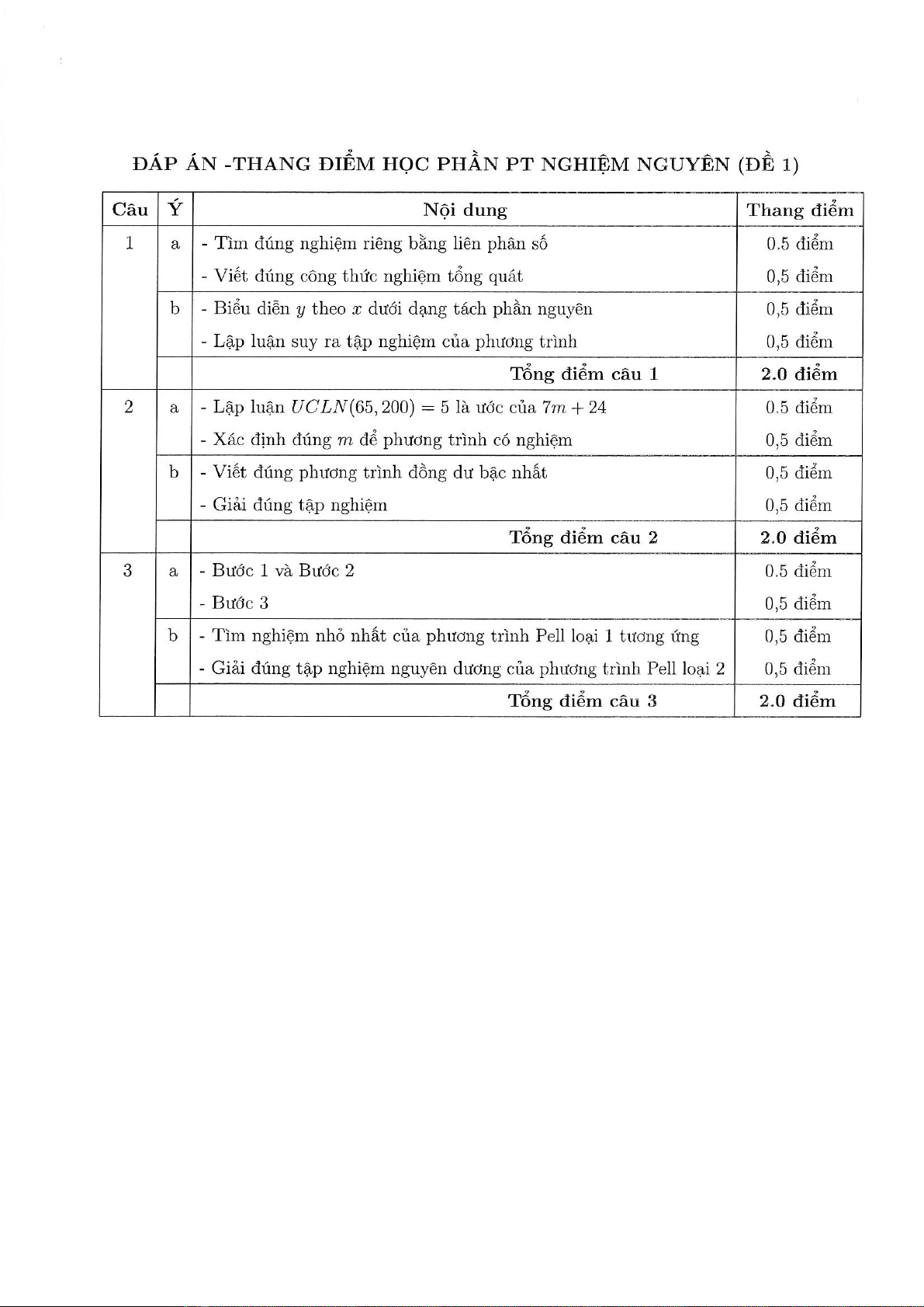 Đề thi kết thúc học phần học kì 1 môn Phương trình nghiệm nguyên năm 2019-2020 có đáp án - Trường ĐH Đồng Tháp