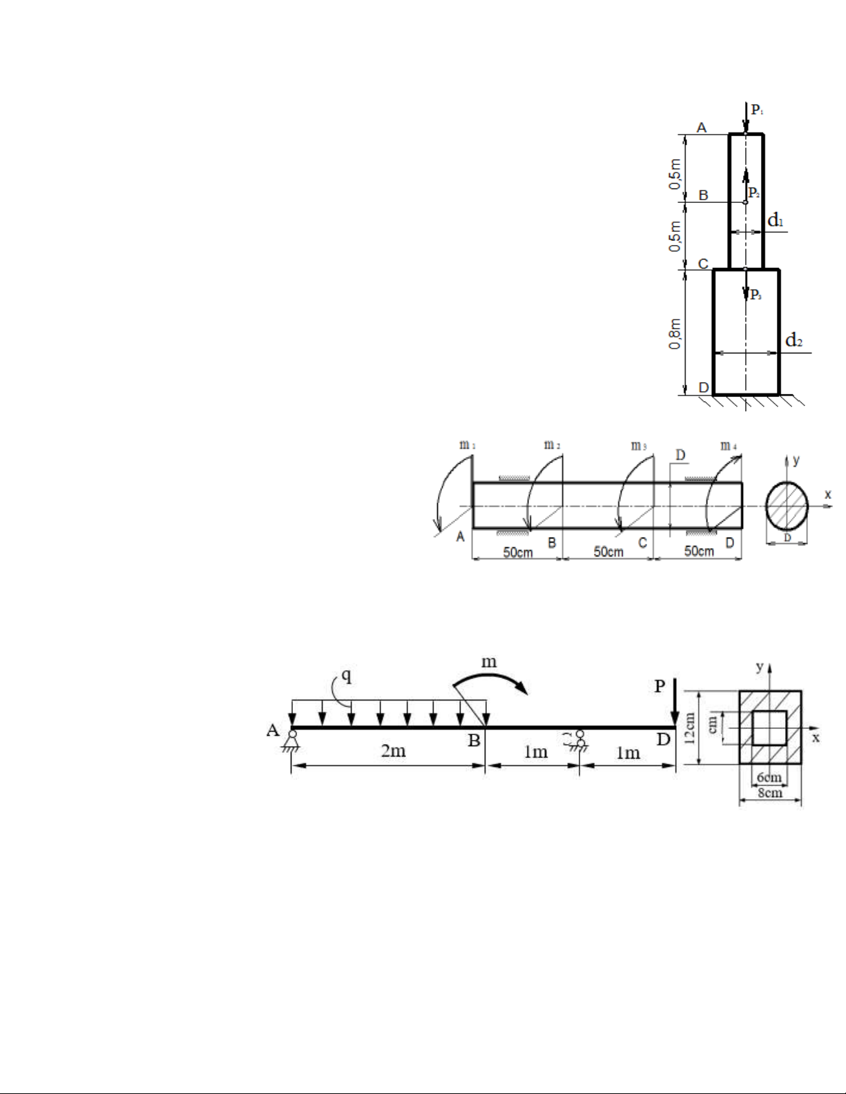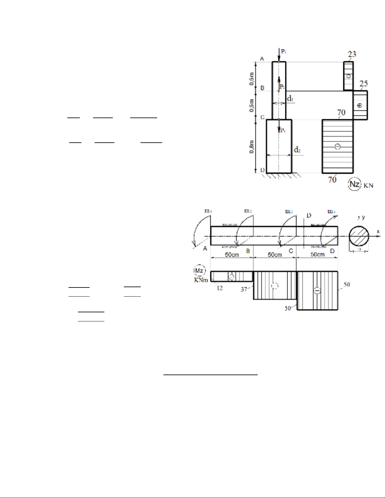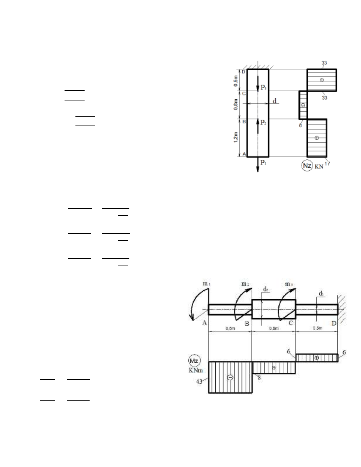 P3=95KN, có mặt cắt ngang là hình tròn đặc có đường kính d1 = 5cm,d2 = 10cm.