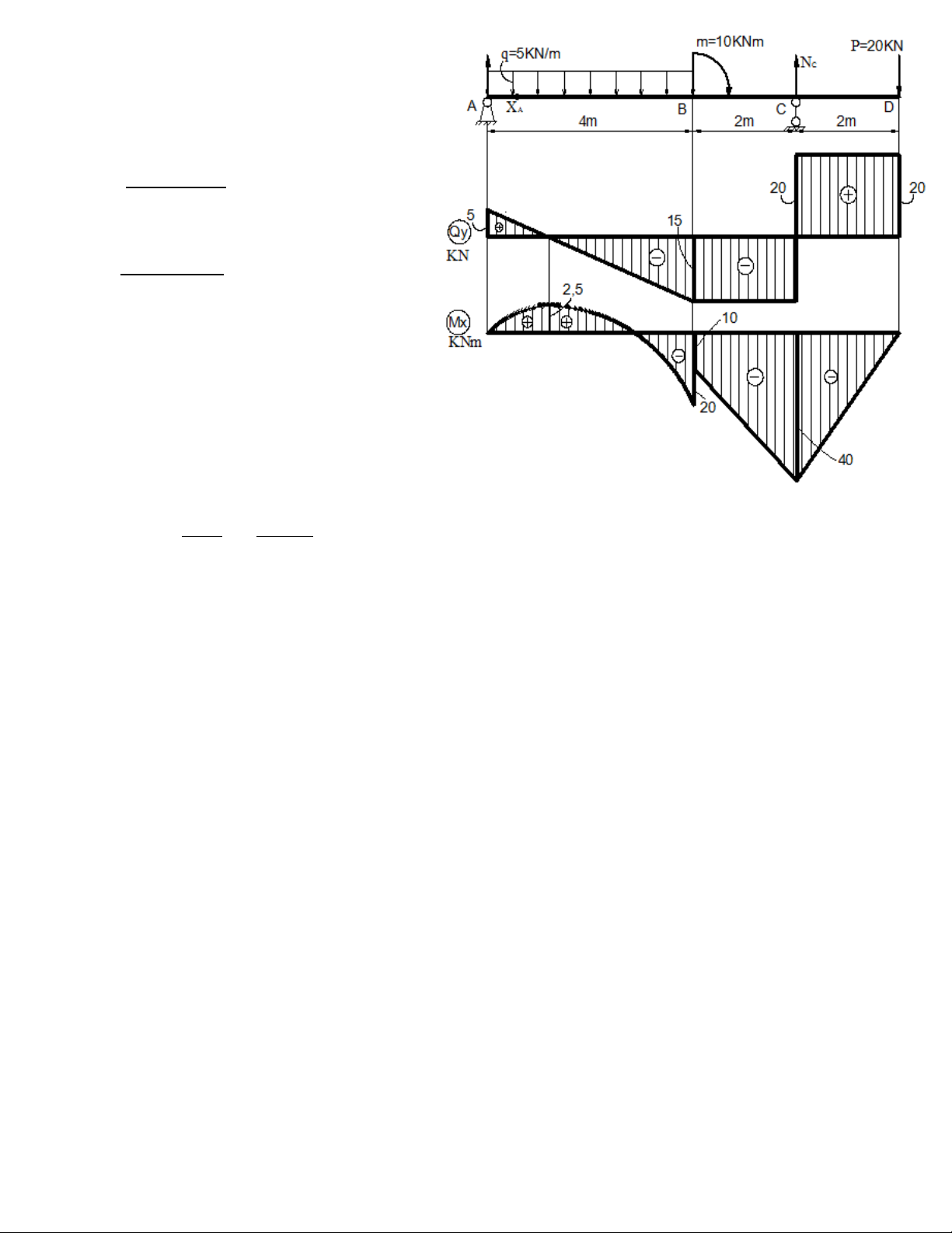 𝑞 = 5𝐾𝑁/𝑚, P = 20KN,