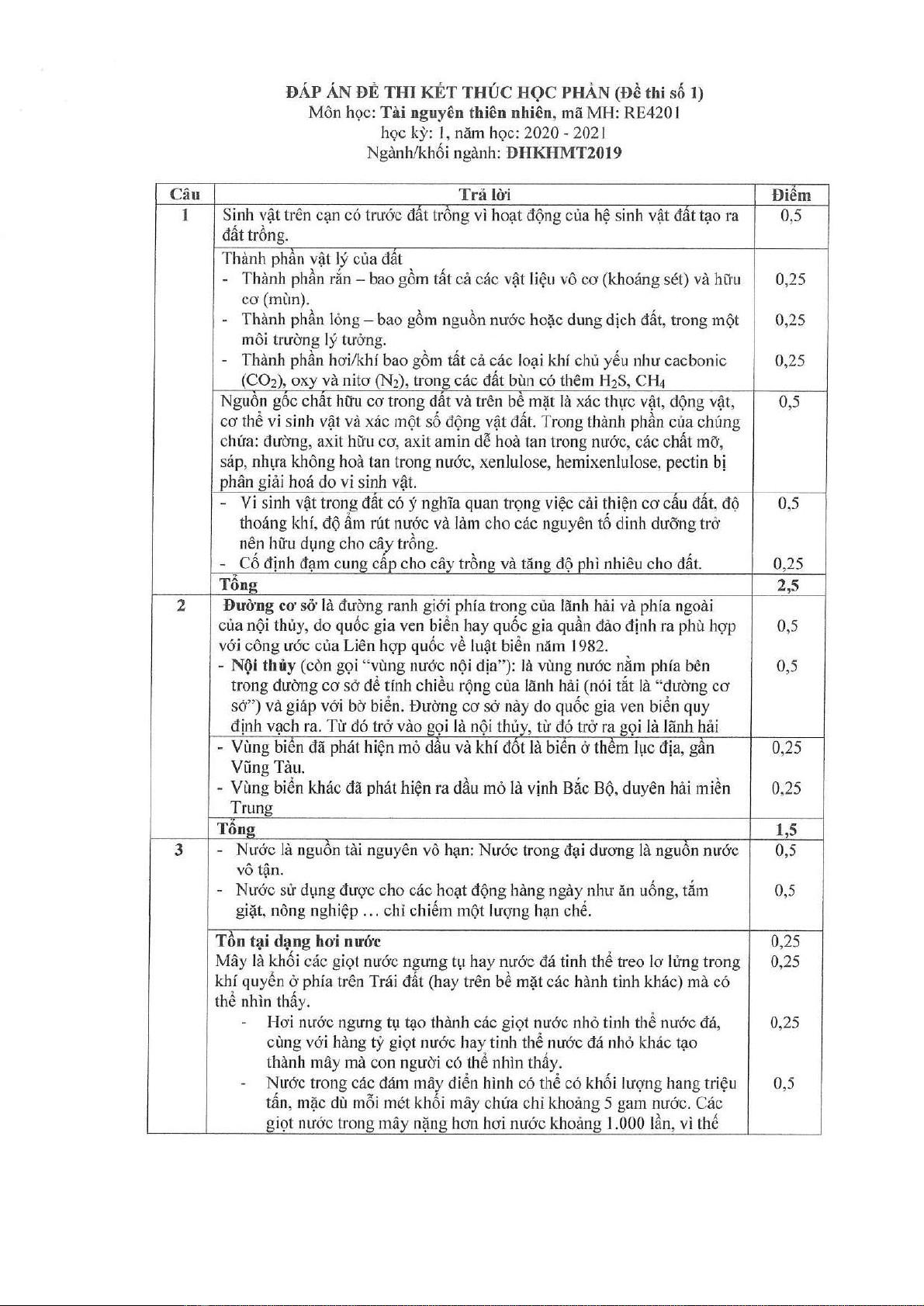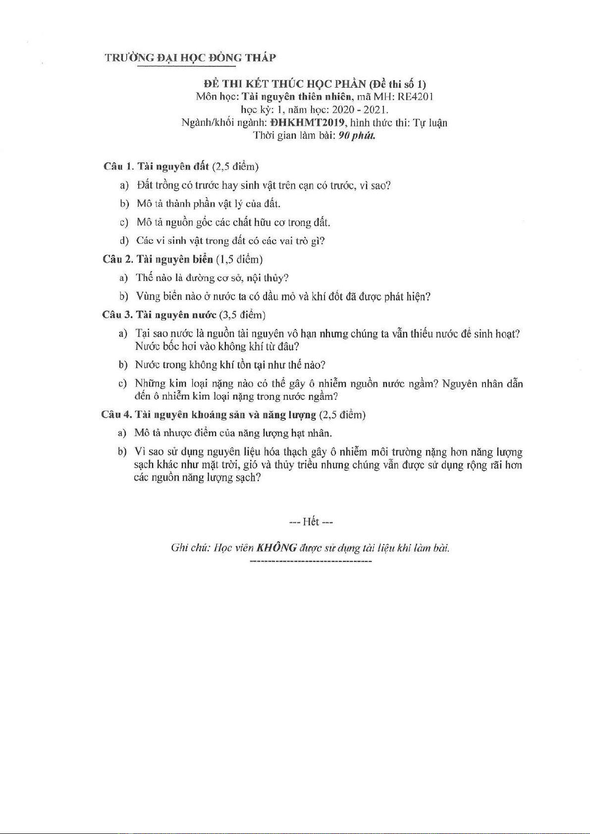 Đề thi kết thúc học phần học kì 1 môn Tài nguyên thiên nhiên năm 2020-2021 có đáp án - Trường ĐH Đồng Tháp
