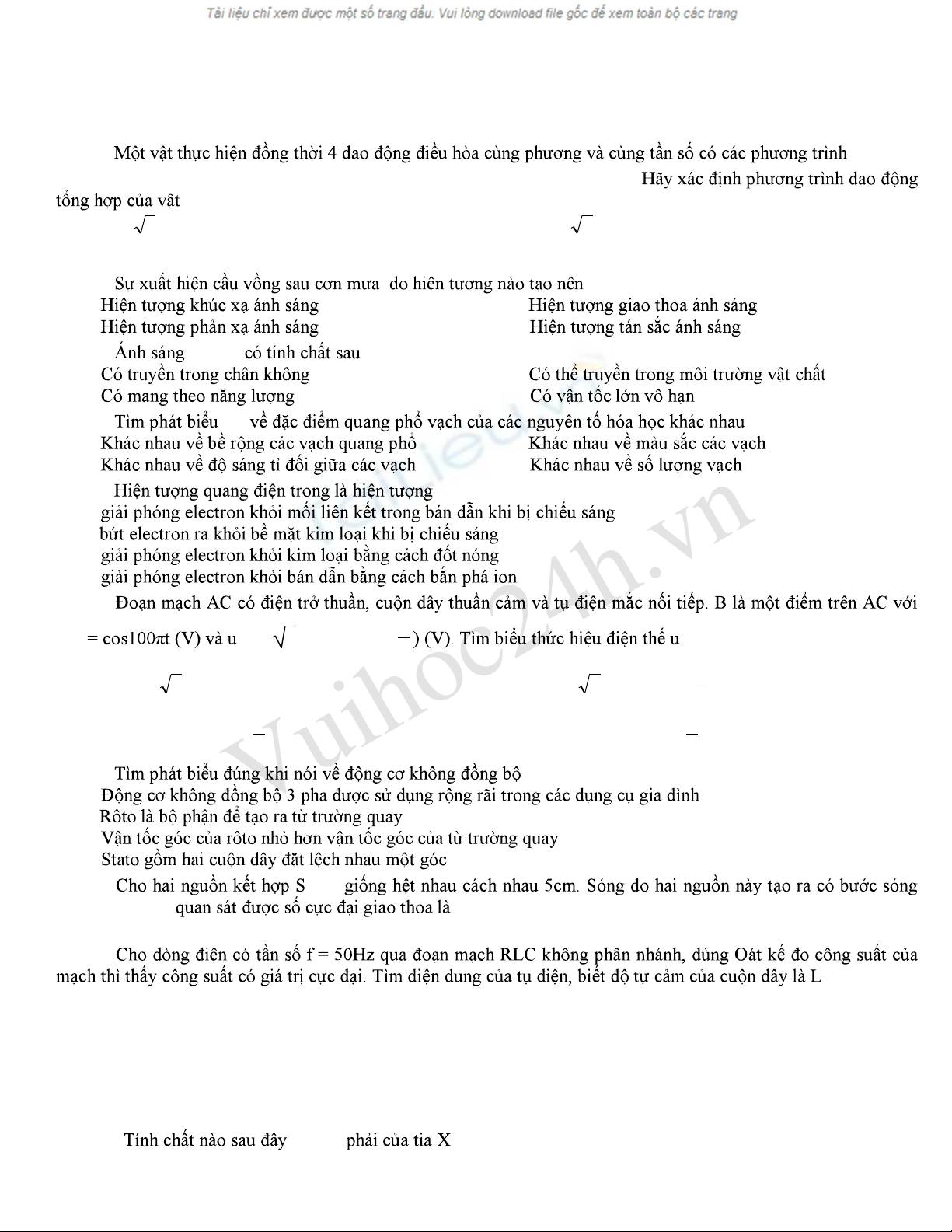 ĐỀ THI ĐH, CĐ MÔN VẬT LÝ