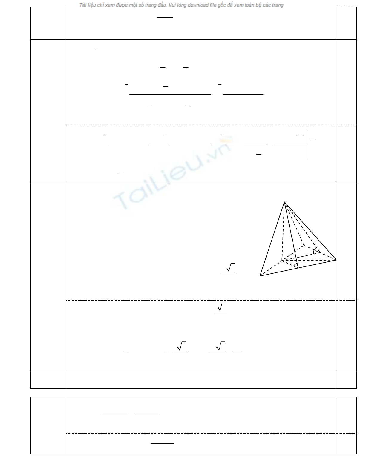 Câu IV (1 điểm) Tính thể tích của hình chóp S.ABC, biết đáy ABC là một tam giác đều cạnh a, mặt bên