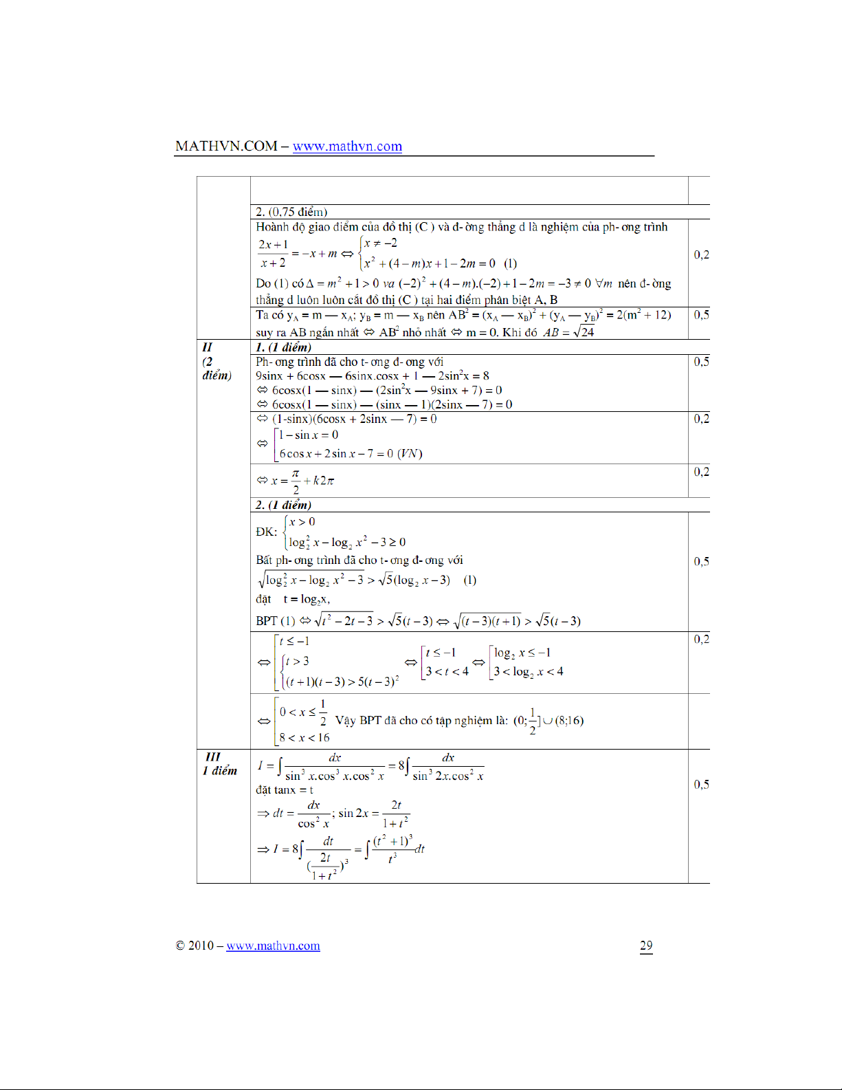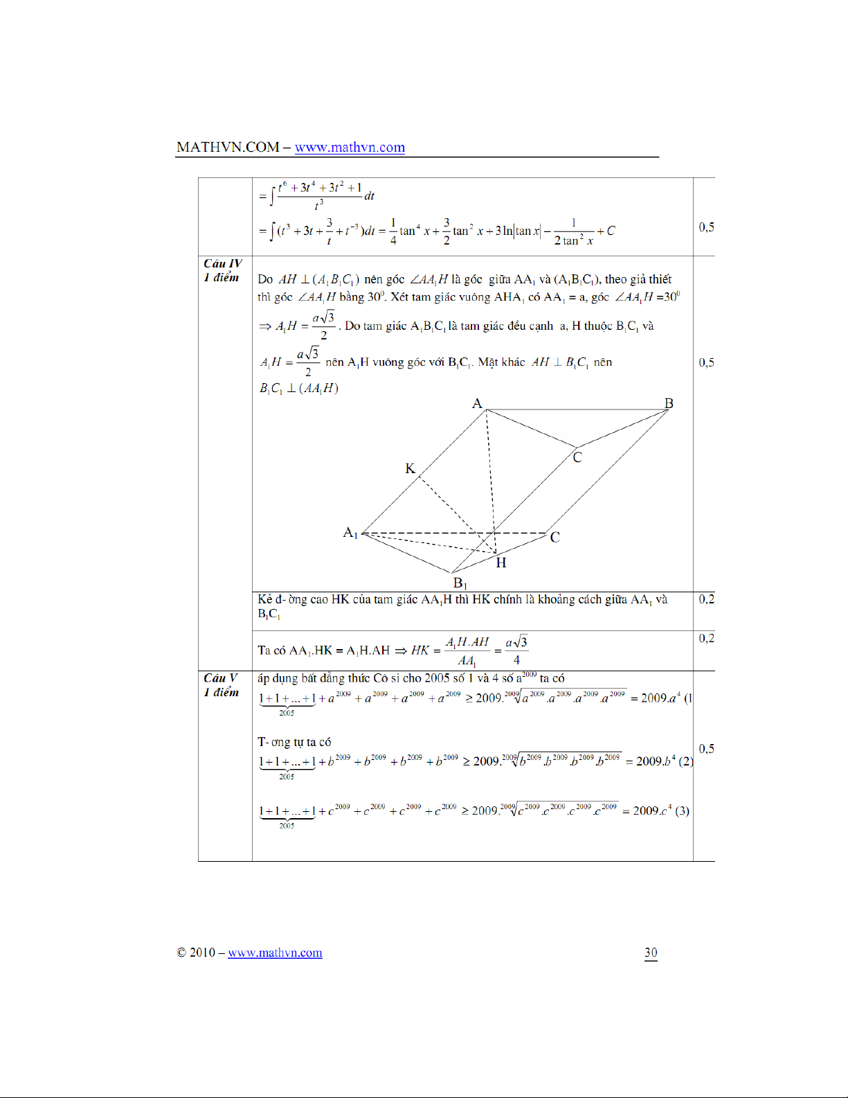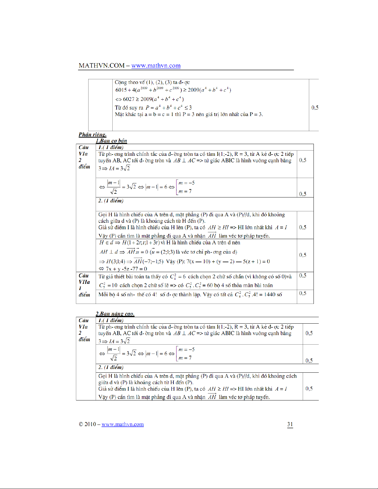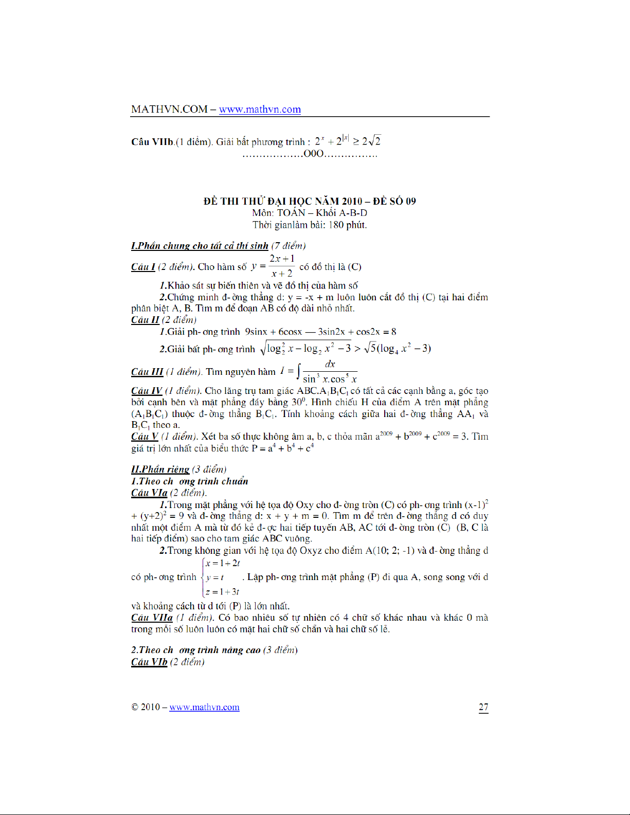 Tài liệu tham khảo dành cho giáo viên, học sinh đang trong giai đoạn ôn thi đại học môn Toán - Đề thi thử đại học môn Toán - Đề số 9