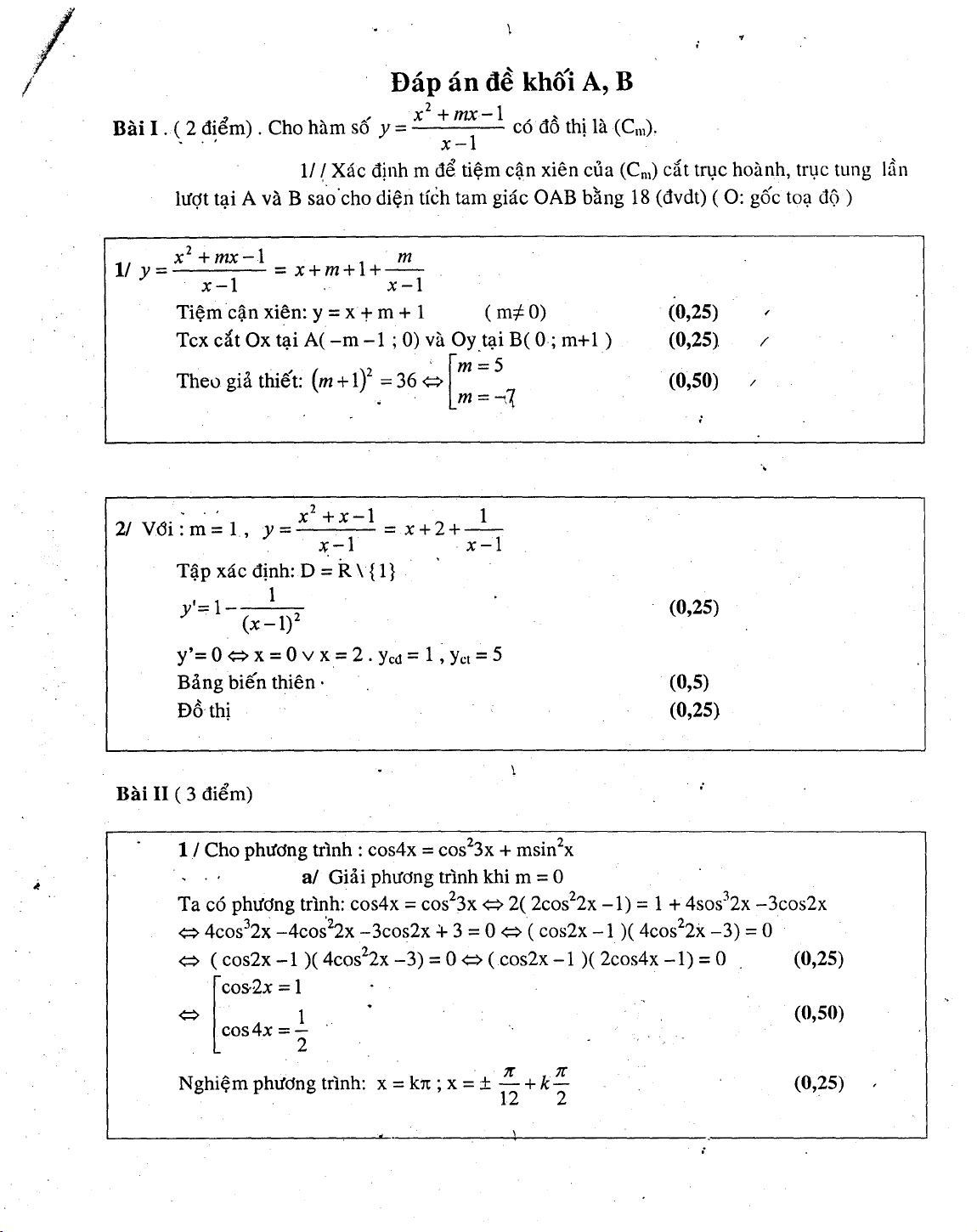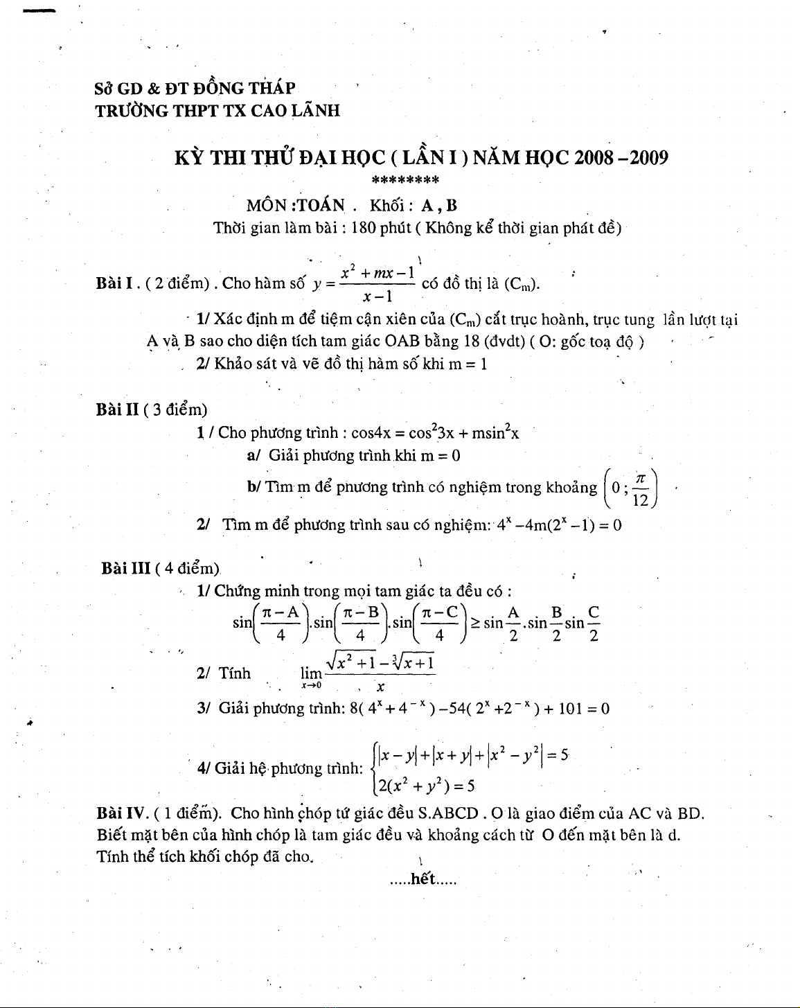 Đề thi thử đại học môn Toán khối A, B và đáp án (2008-2009)