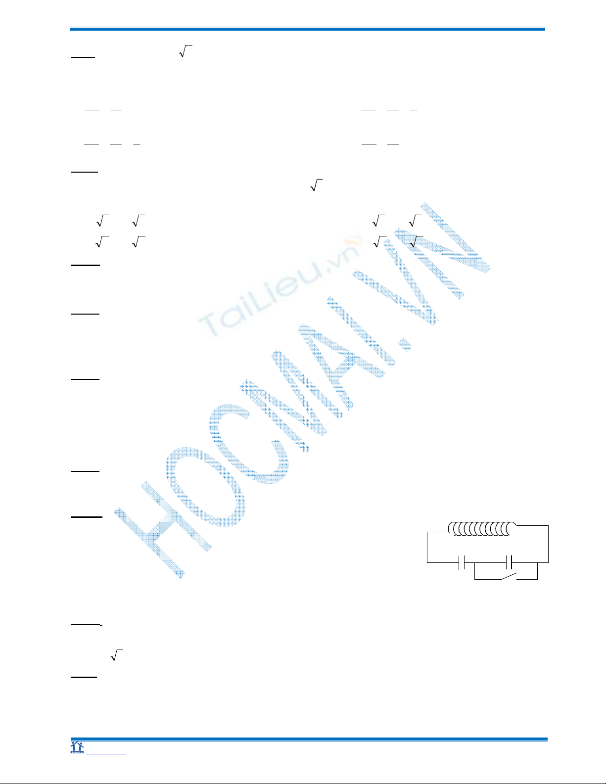 Câu 2: Mạch dao ñộng gồm cuộn dây có ñộ tụ cảm L = 30