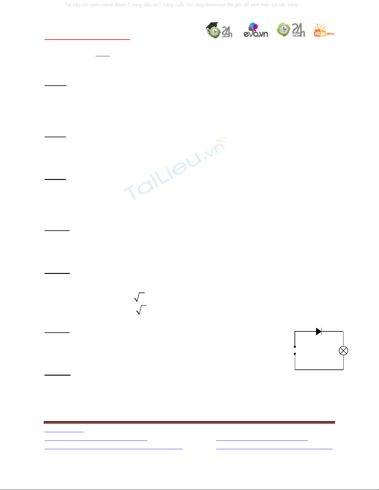 Câu 12: Trong phương pháp chỉnh lưu nửa chu kì như sơ đồ bên, đèn sẽ