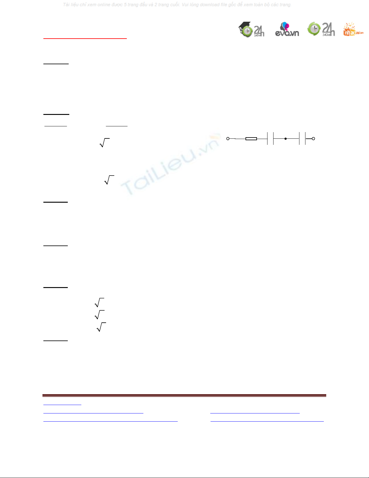 mạch giá tr hiệu dụng 5A ờng độ tức thời trễ pha /2 so với u. Biểu thức ờng độ