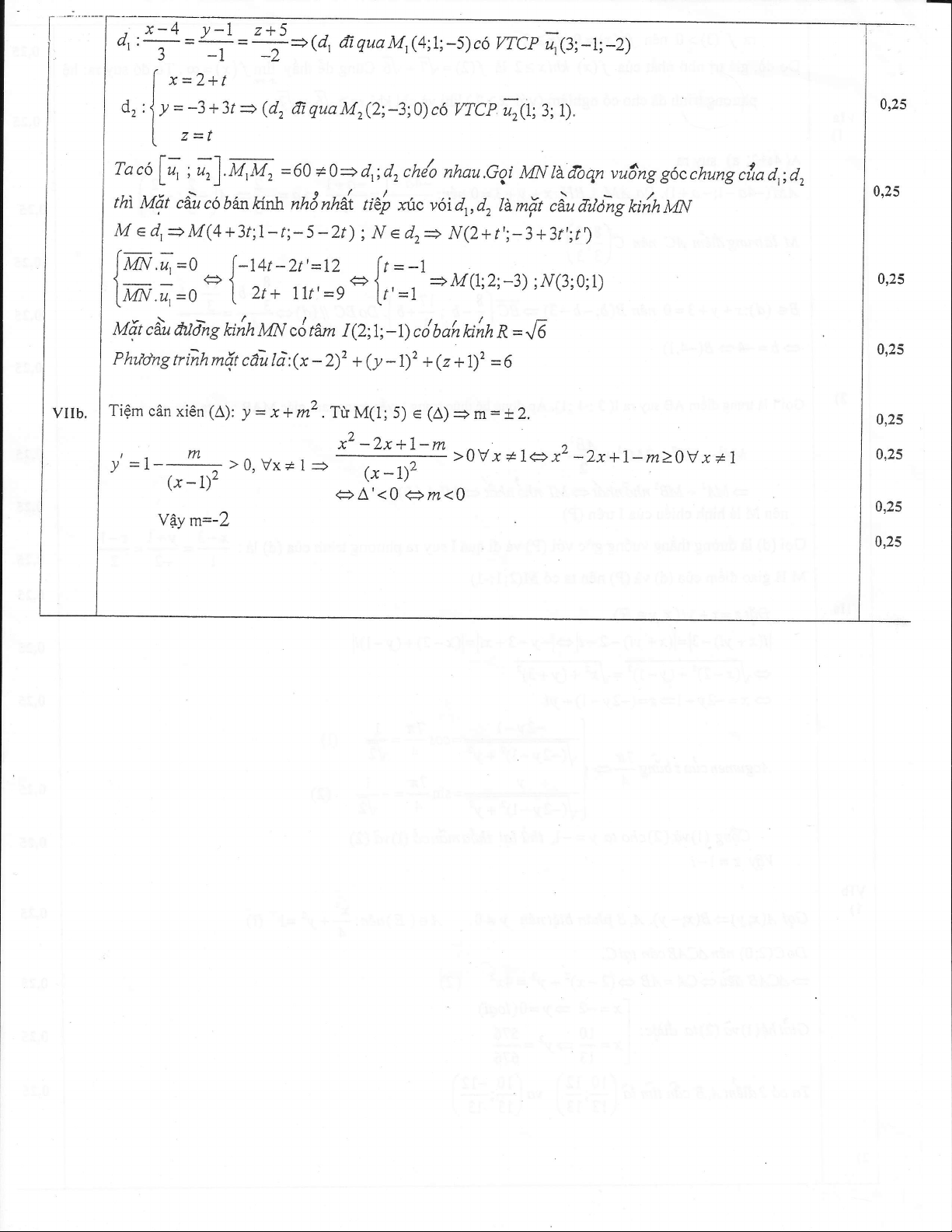 M ld. giao di6m crla (d) va @) n6n ta c6 M(2;1;-1)