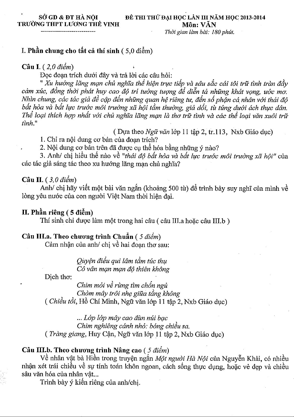Đề thi thử ĐH môn Ngữ Văn - THPT Lương Thế Vinh (2013-2014)