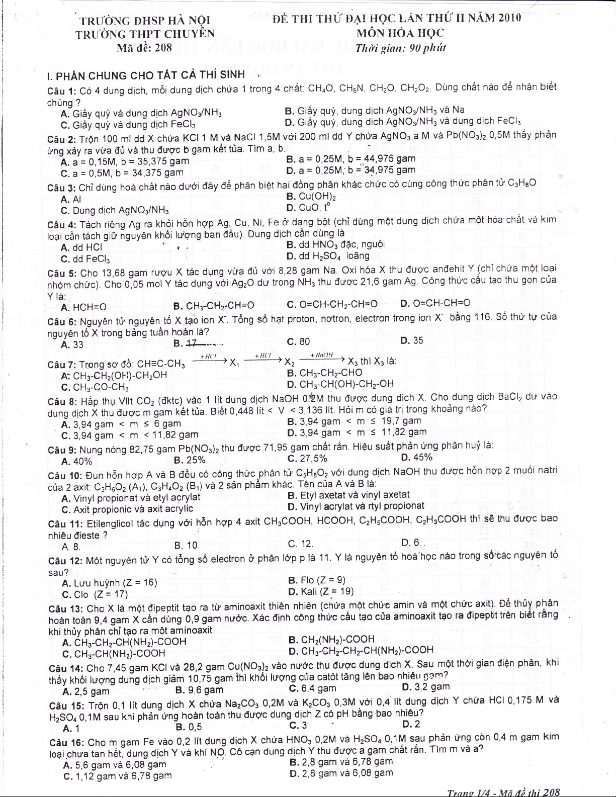 C6u 2: Trgn 100 mt dd X chua KCt 1 M vd NaCl 1,5M voi 200 mldd Y chua AgNo3 a M vd Pb(No3)z 0,5M thiy phin