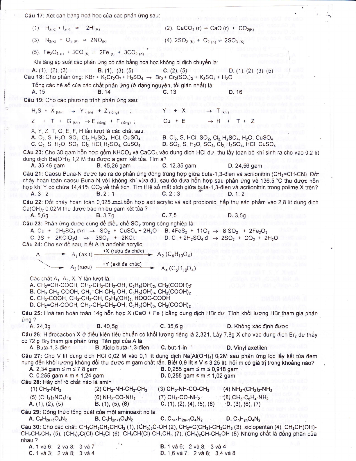 Cdu 21: Caosu Buna-N duoc tao rs do phen ung d6ng trung hop girl'a buta-'|,3-dien vd acrilonitrin (CH,=Q11-CNJ. O6t