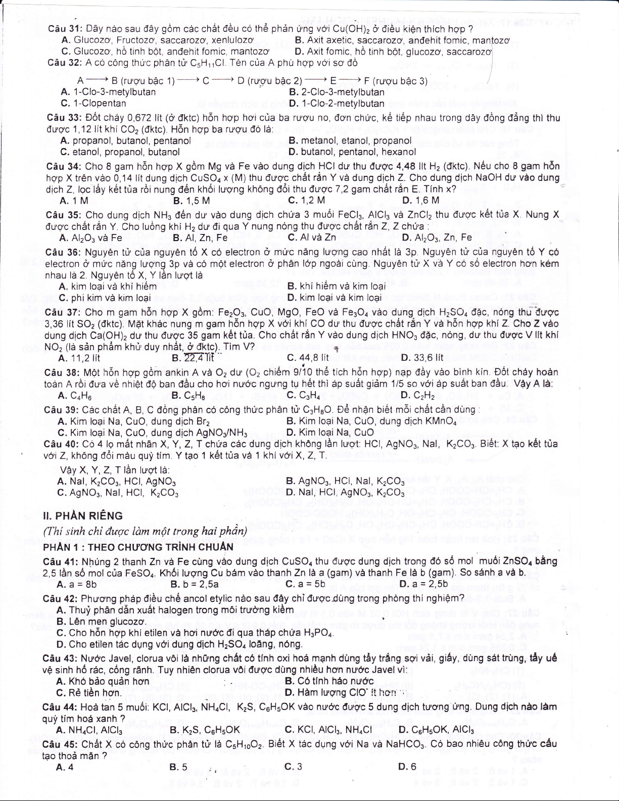 I. PHAN CHUNG CHO TAT CA THi SINH