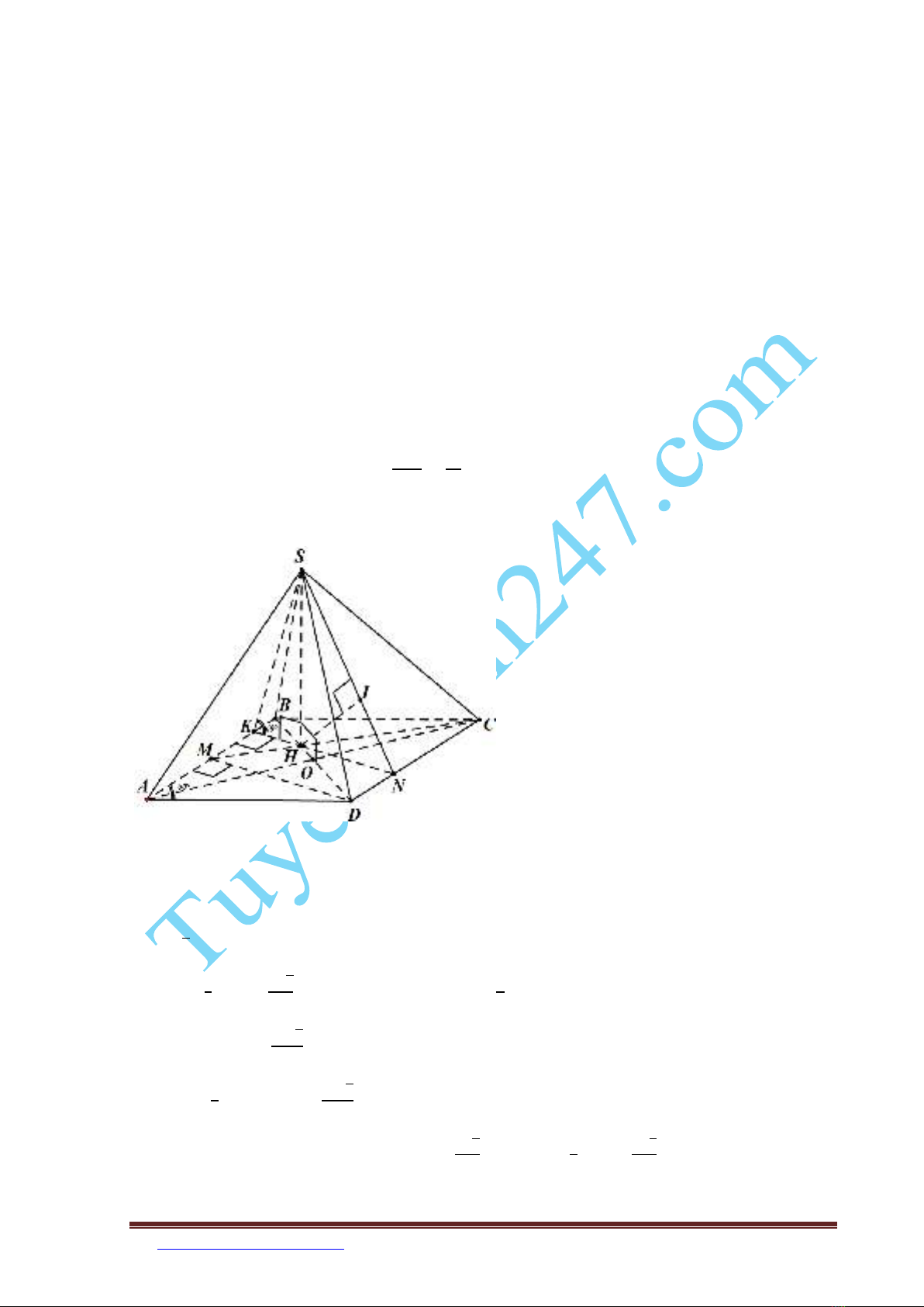 Câu 6 ( ID: 83048 ) (1,0 điểm). Cho hình chóp S.ABCD có đáy ABCD là hình thoi cạnh a,