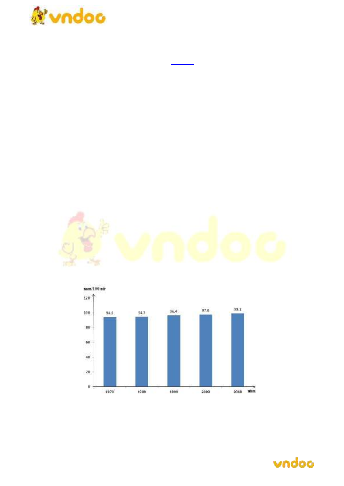 A. Tỉ số giới tính nước ta liên tục tăng. B. Chênh lệch giới tính có xu hướng giảm.