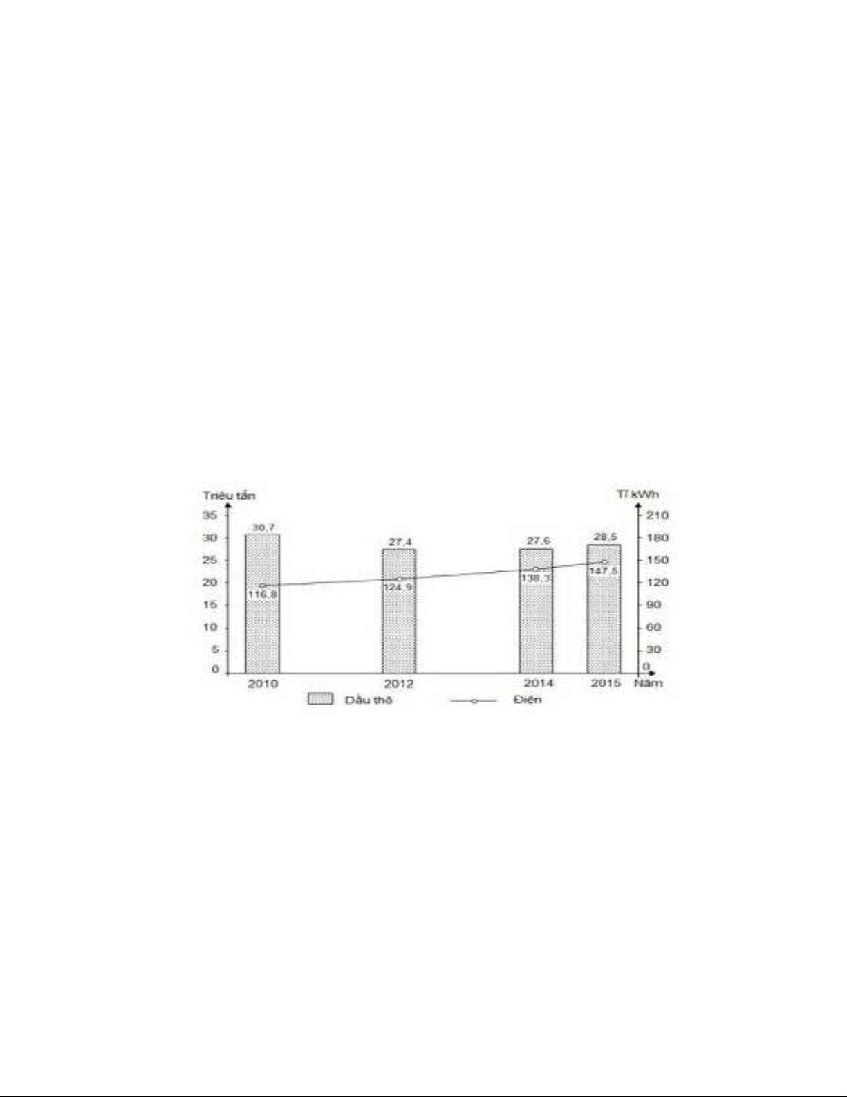 Câu 31. Cho biểu đồ về dầu thô và điện của Ma-lai-xi-a, giai đoạn 2010 - 2015