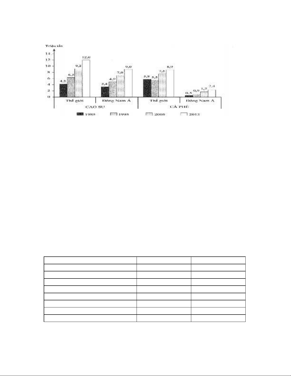 A. Diện tích cao su, cà phê của thế giới và Đông Nam Á qua các năm.