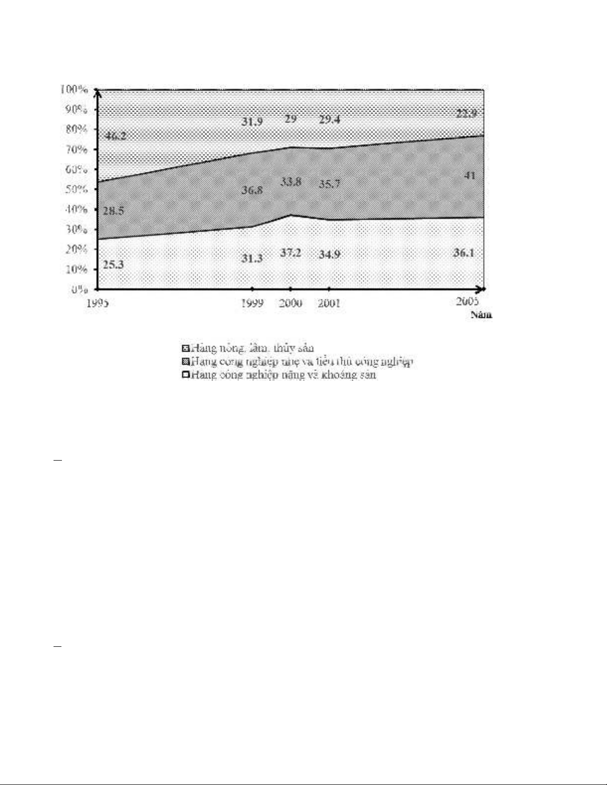 C. Biểu đồ thể hiện giá trị xuất khẩu hàng hóa phân theo nhóm hàng ở nước ta giai đoạn 1995- 2005.