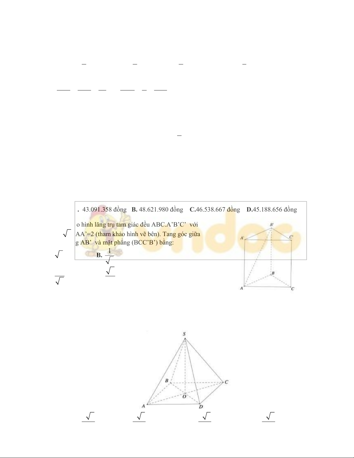 Câu 10: Trong không gian với hệ tọa độ Oxyz, cho điểm A(2; 2;1) . Tính độ dài đoạn thẳng OA được