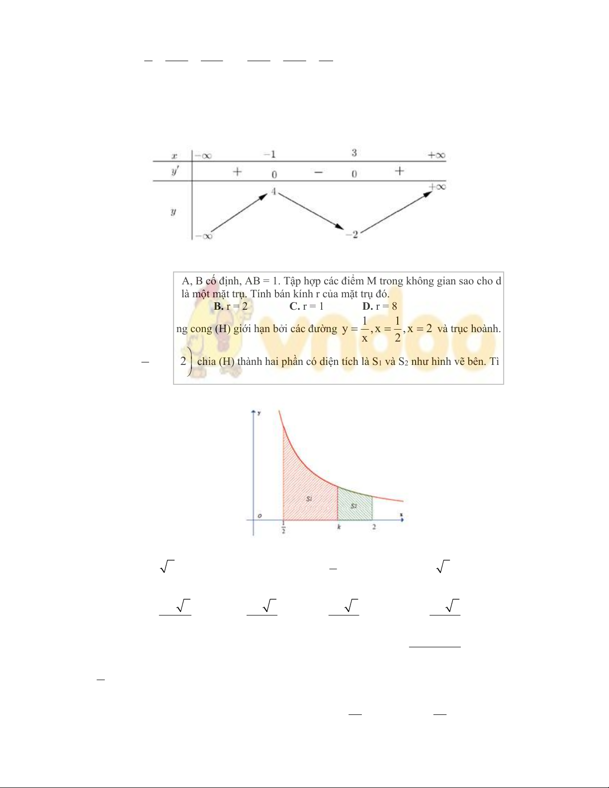 các giá trị thực của k để S1 = 3S2.