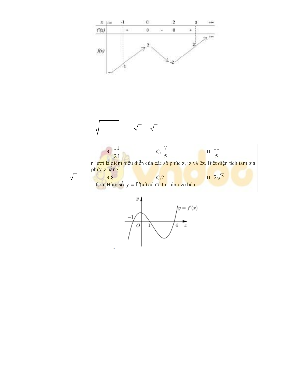 Câu 39. Cho hàm số y = f(x). Hàm số yf'(x)có đồ thị hình vẽ bên