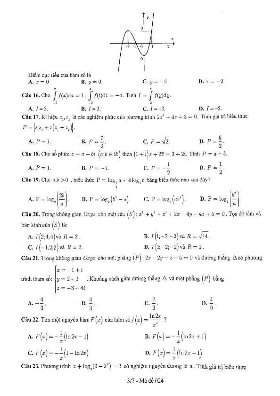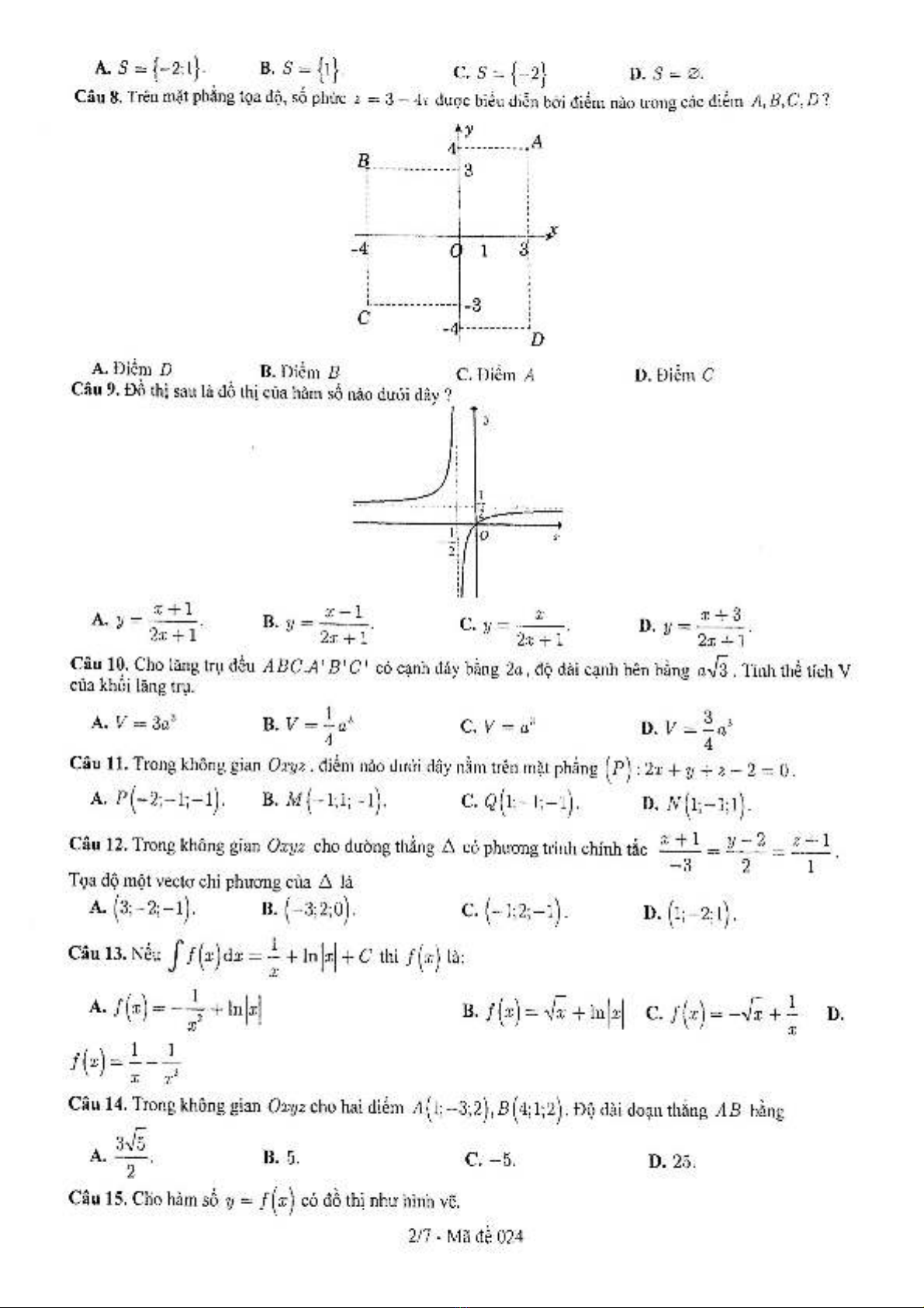 Đề thi thử Toán tốt nghiệp THPT 2025 có đáp án - Trường THPT Gio Linh, Quảng Trị