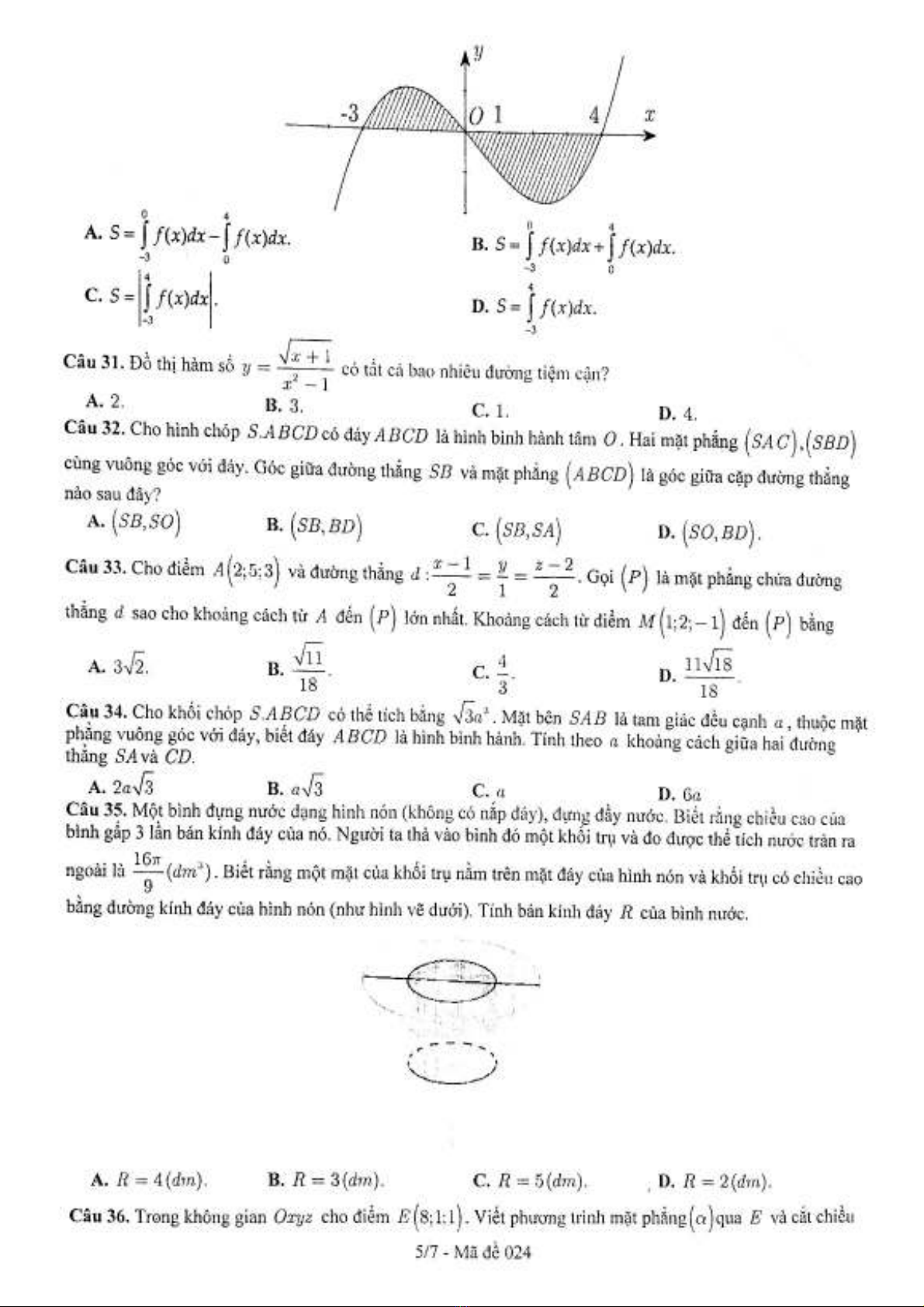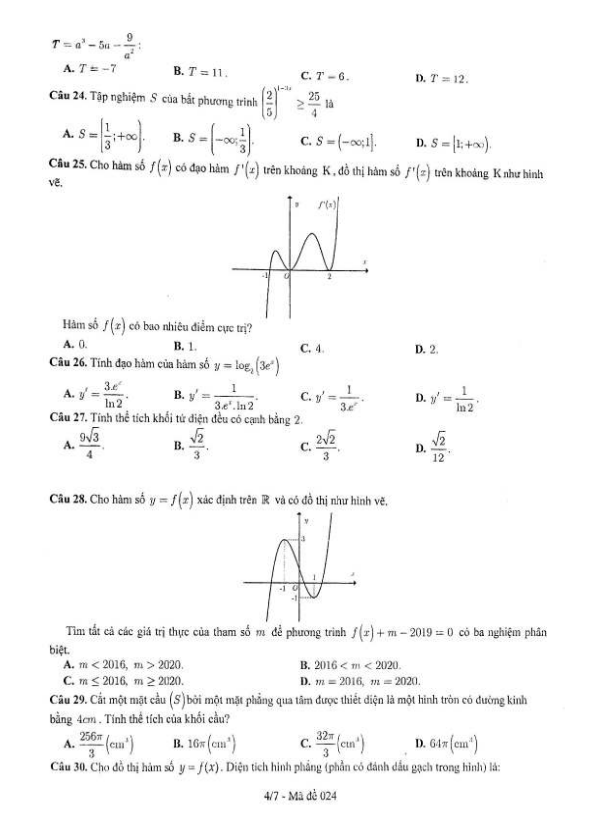 Đề thi chính thức tốt nghiệp THPT năm 2025 môn Toán có đáp án