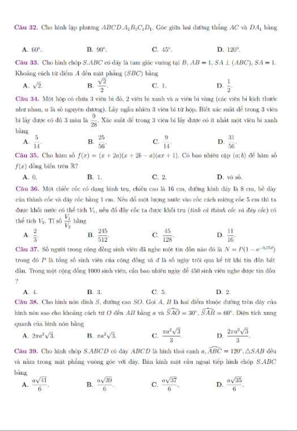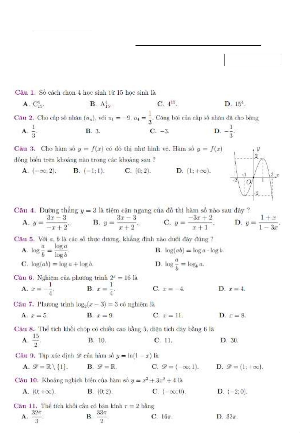 Số báo danh: . . . . . . . . . . . . . . . . . . . . . . . . . . . . . . . . . . . . . . . . . . . . . . . .