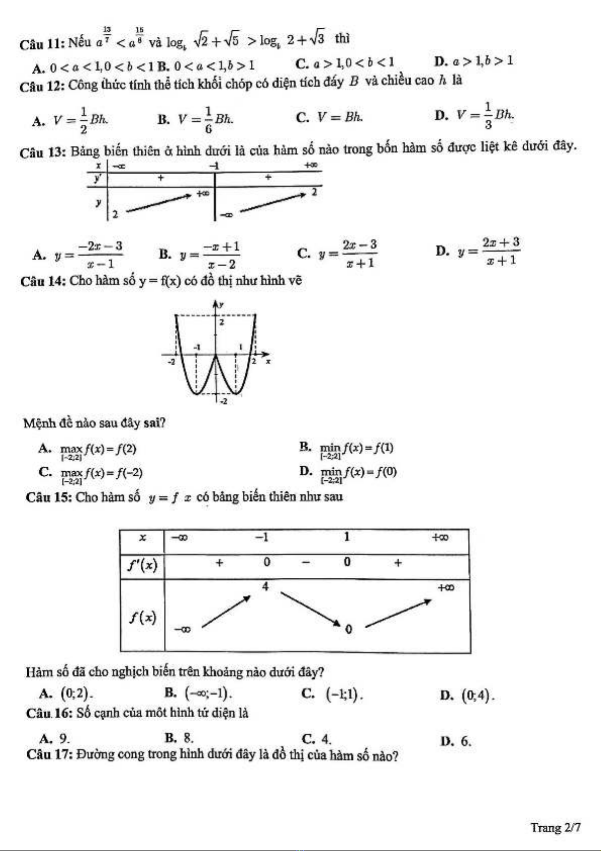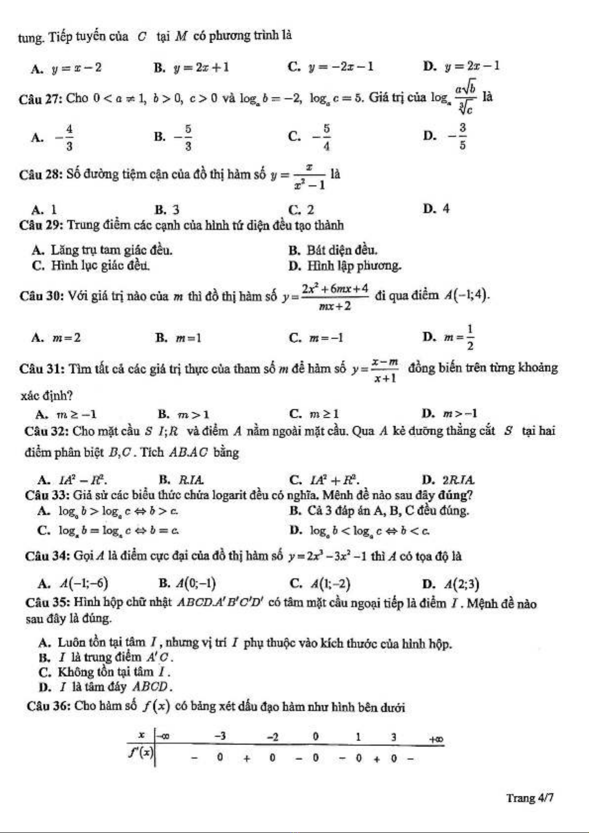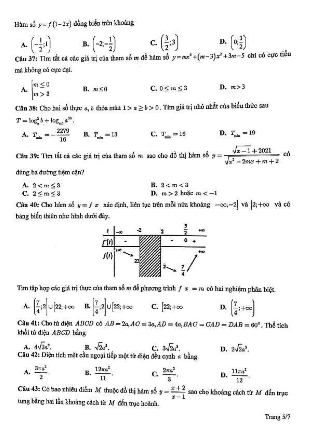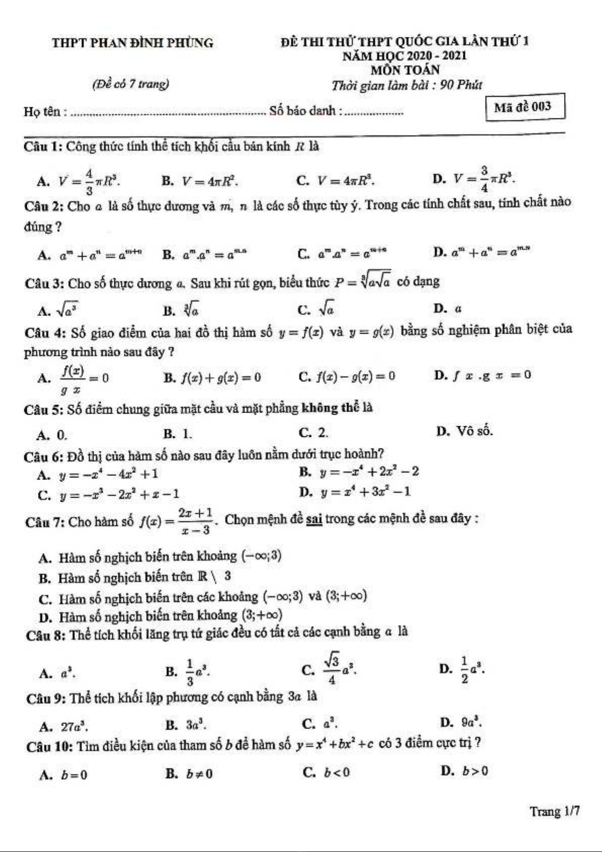 Đề thi thử THPT Quốc gia môn Toán năm 2020-2021 có đáp án - Trường THPT Phan Đình Phùng (Lần 1)