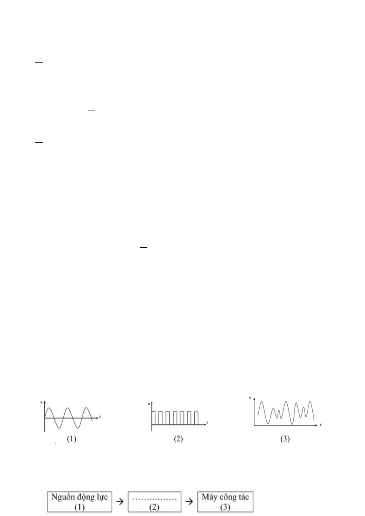 Câu 13. Dưới đây là hình biểu diễn ba tín hiệu điện.