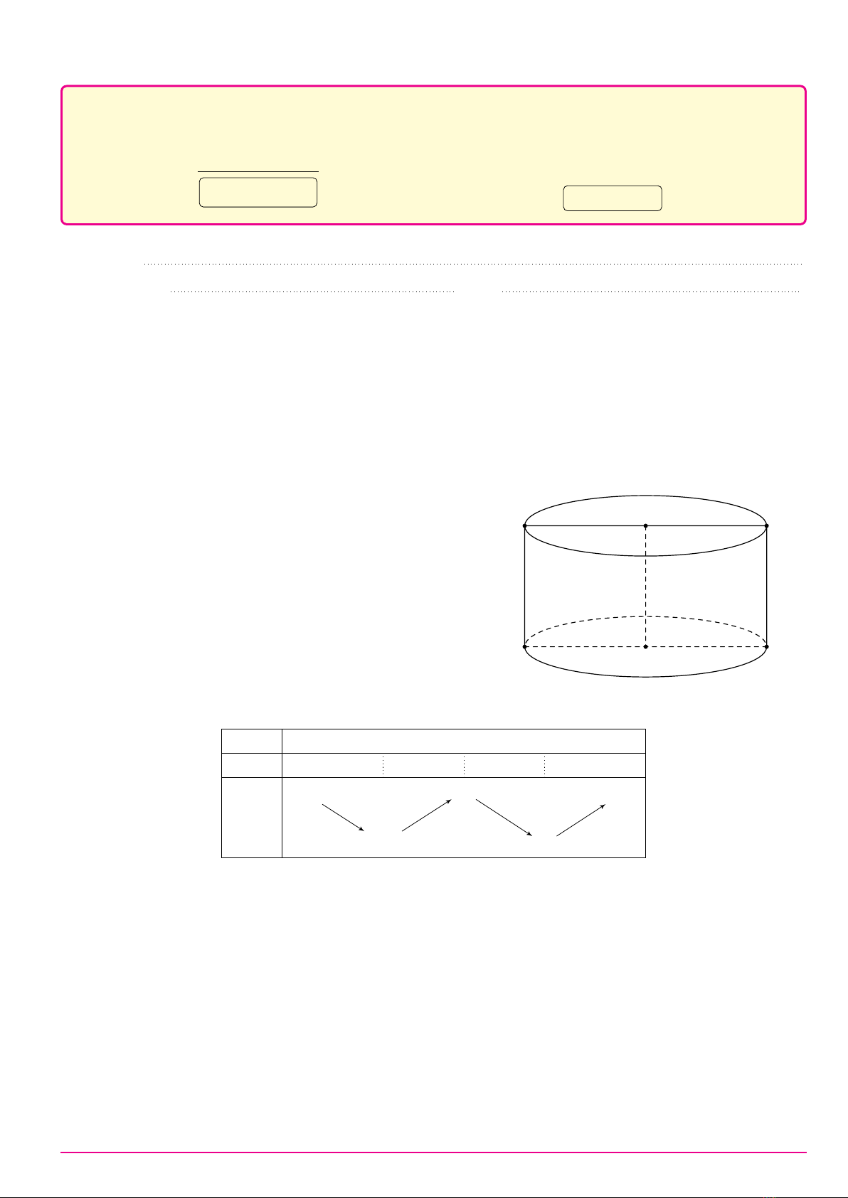 Câu 3. Cho hình trụ có bán kính đáy bằng 4cm và chiều cao bằng 6cm. Độ dài đường chéo của thiết